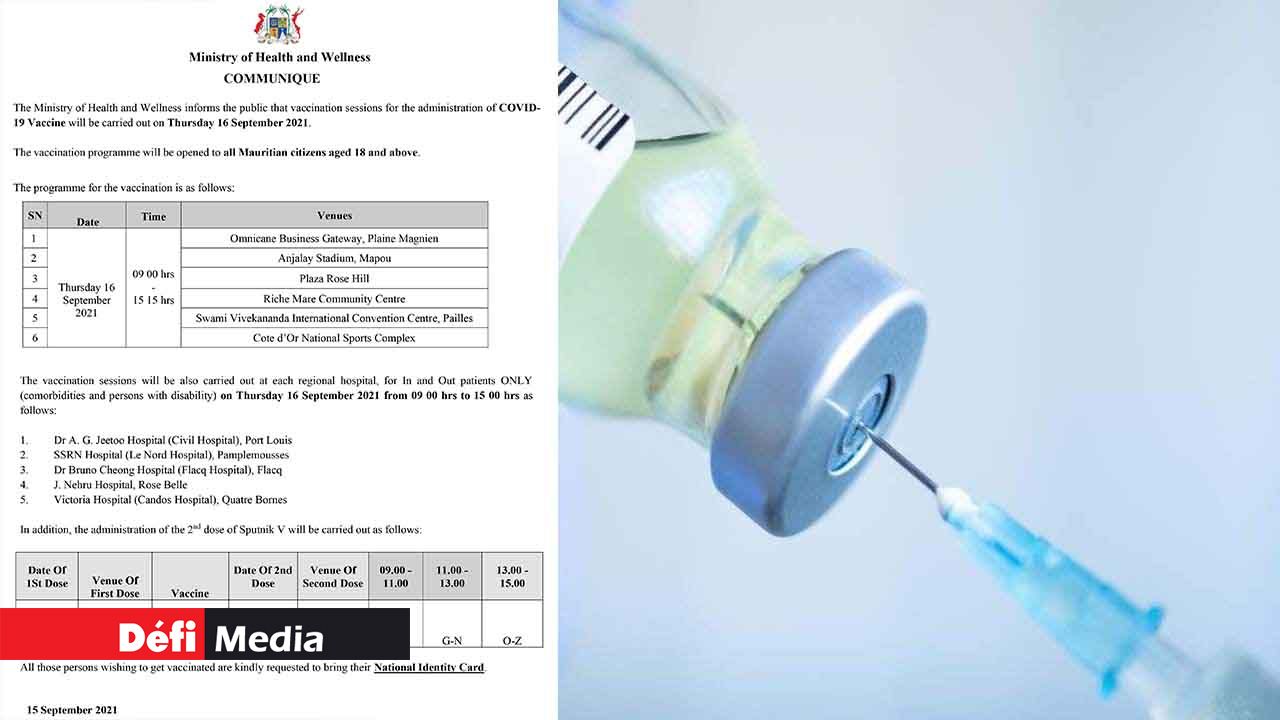 Ceux qui devront recevoir leur deuxième dose de vaccin Spoutnik V sont priés de se rendre au Central Warehouse, à Castel, demain. L’exercice de vaccination se fera par ordre alphabétique.
