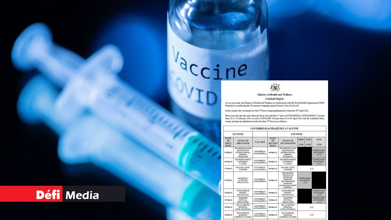 Dans un communiqué émis vendredi 30 avril, le ministère de la Santé a rendu publics les dates et lieux de vaccination de la seconde dose.