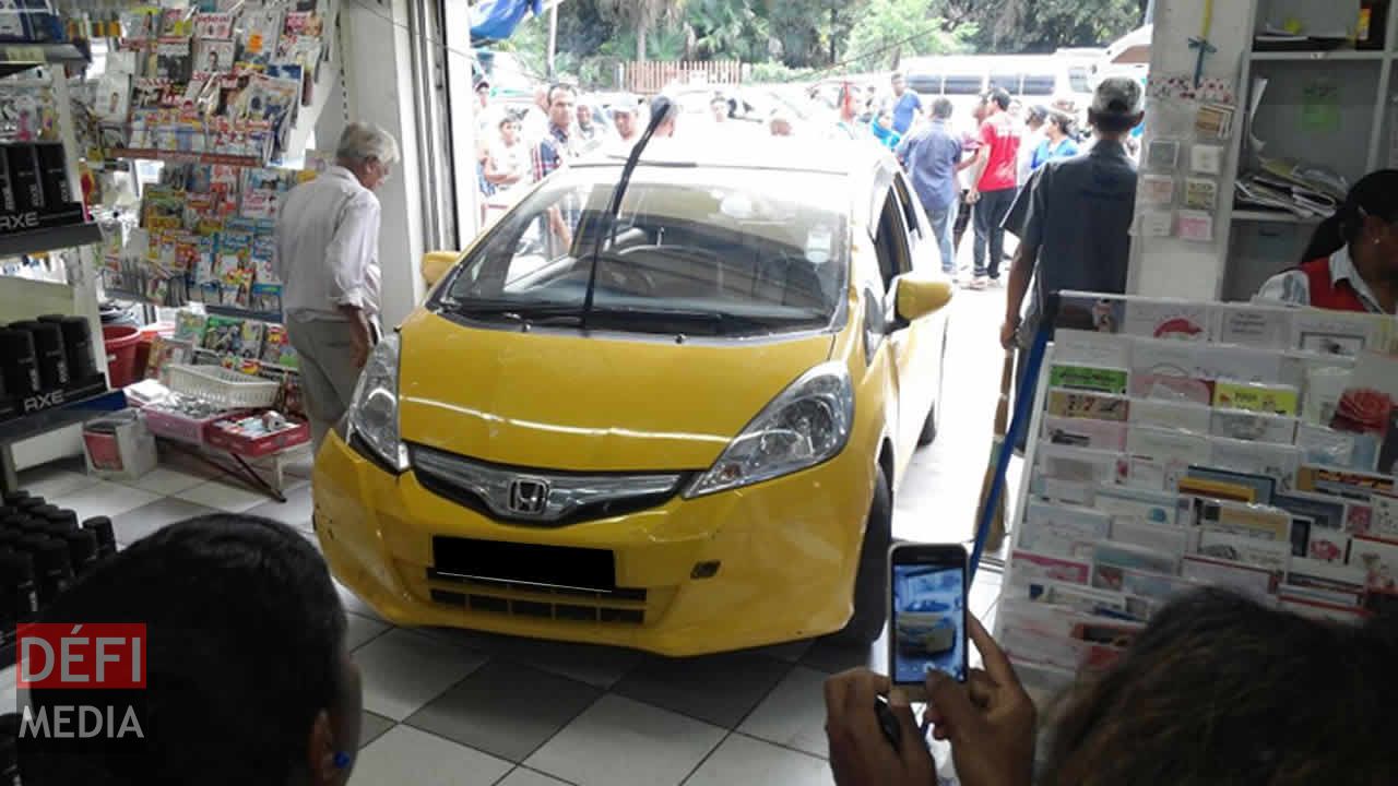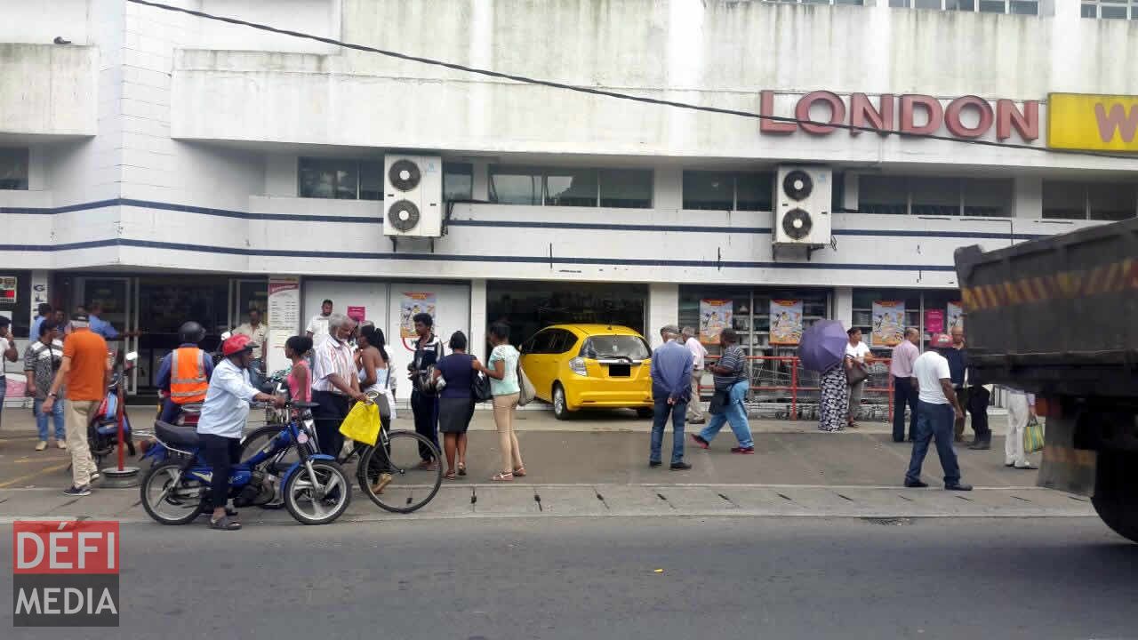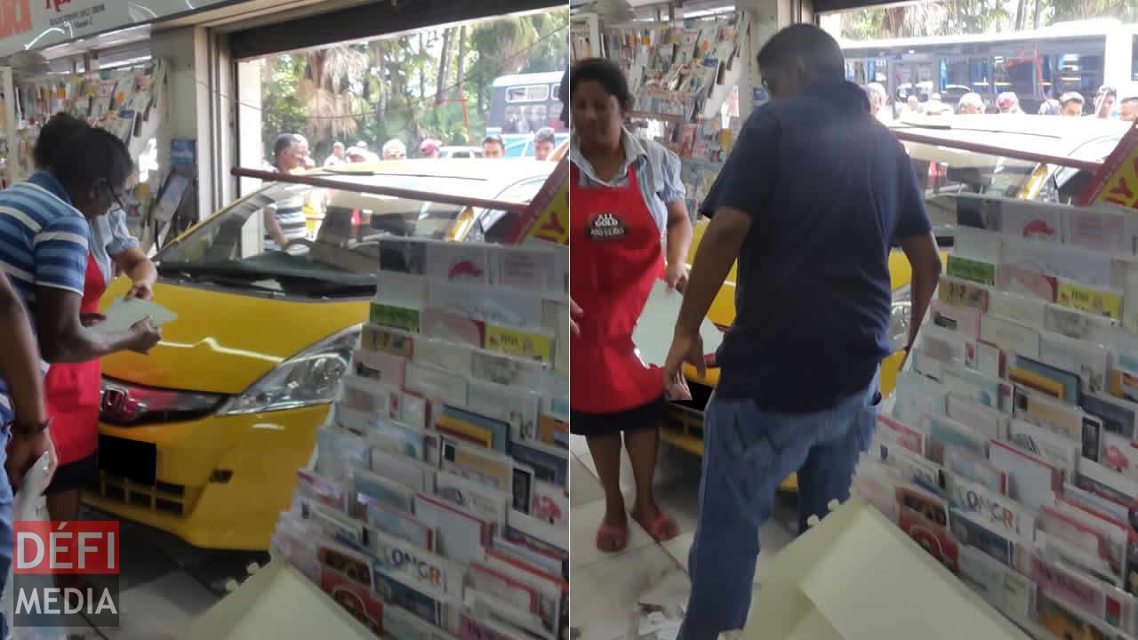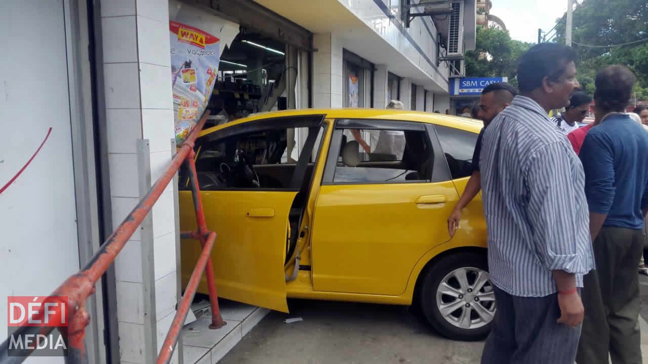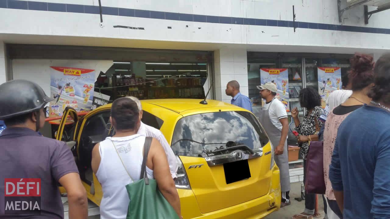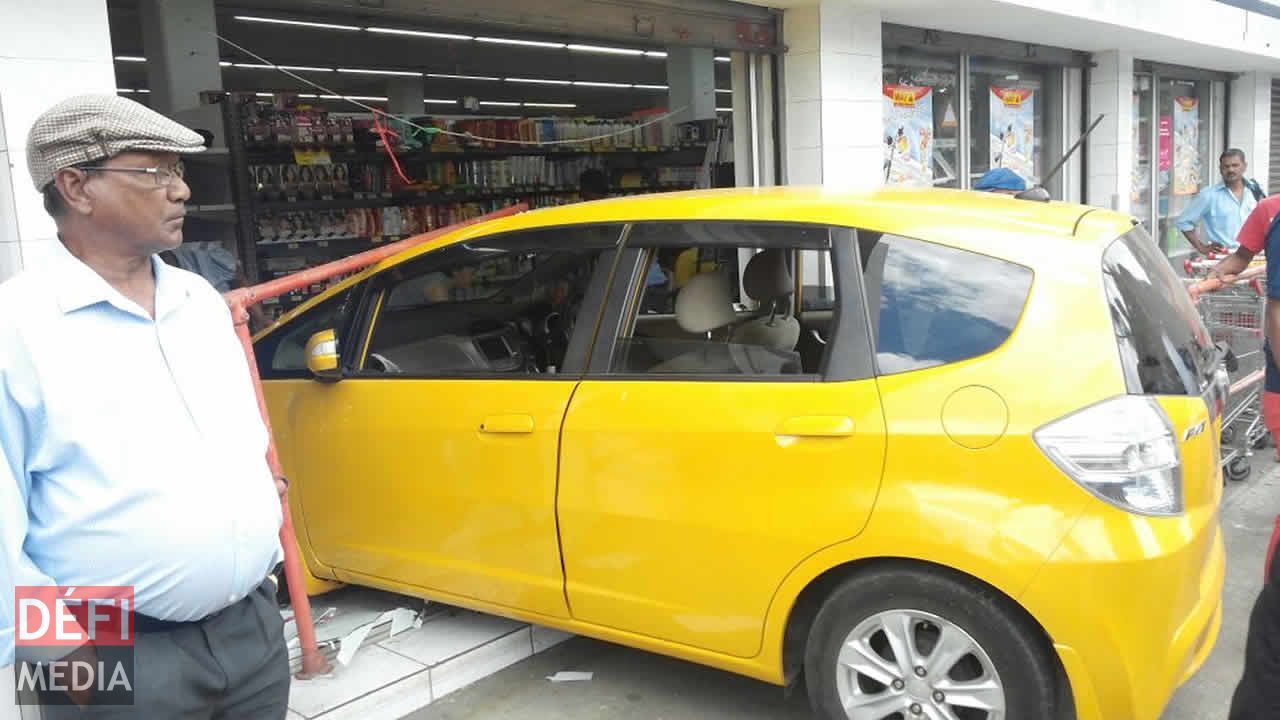 Accident de la route hors du commun à la mi-journée mercredi 30 novembre : une voiture a terminé sa course dans le supermarché London Way à La-Caverne, Vacoas, après une collision avec une autre voiture.