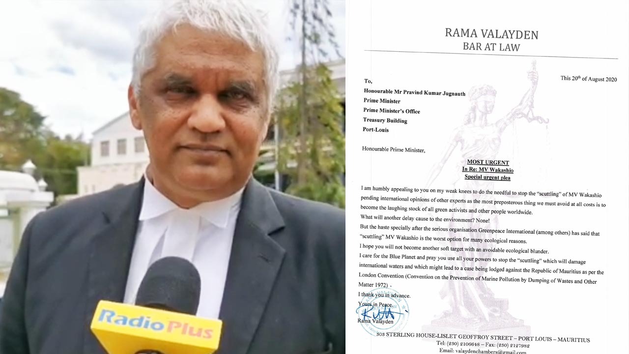 Après Greenpeace International et Reuben Pillay, c’est au tour de Me Rama Valayden de s’engager contre le sabordage de la partie avant du Wakashio au large des côtes mauriciennes.