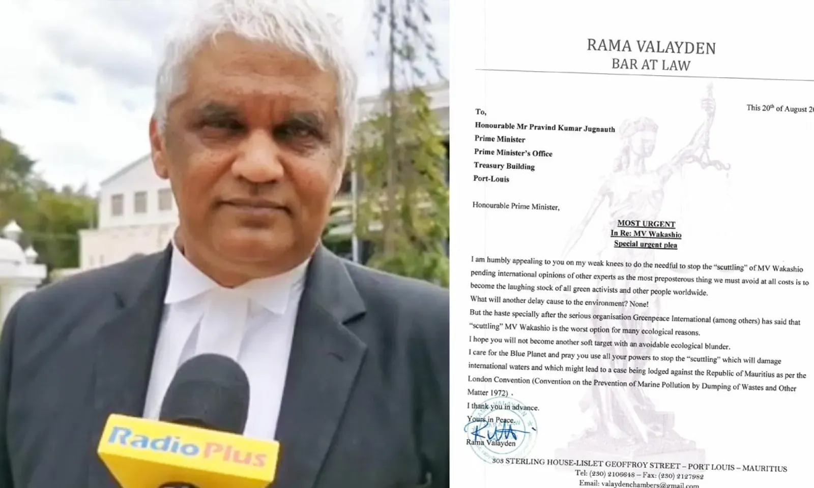Dans une lettre adressée à Pravind Jugnauth, ce jeudi 20 août, Me Rama Valayden implore le Premier ministre (PM) de stopper l’exercice de sabordage du vraquier battant pavillon panaméen, en attendant les opinions des experts internationaux afin «de ne pas devenir la risée de tous les militants écologistes».