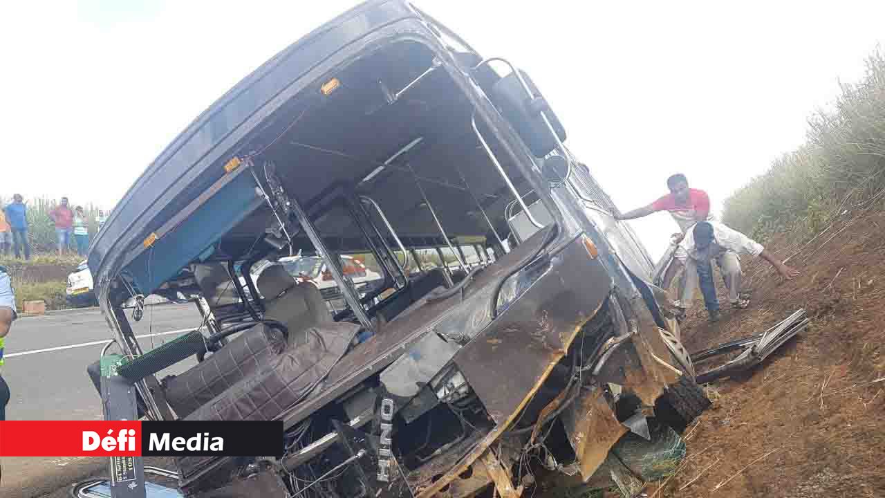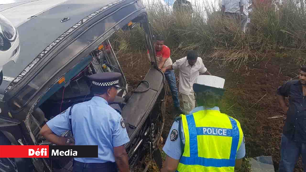 Un autobus avait percuté une voiture blanche avant de se renverser dans un canal. Le chauffeur du bus affirme qu’il n’a rien pu faire pour éviter cet accident. Deux autres voitures sont aussi impliquées dans cet accident.