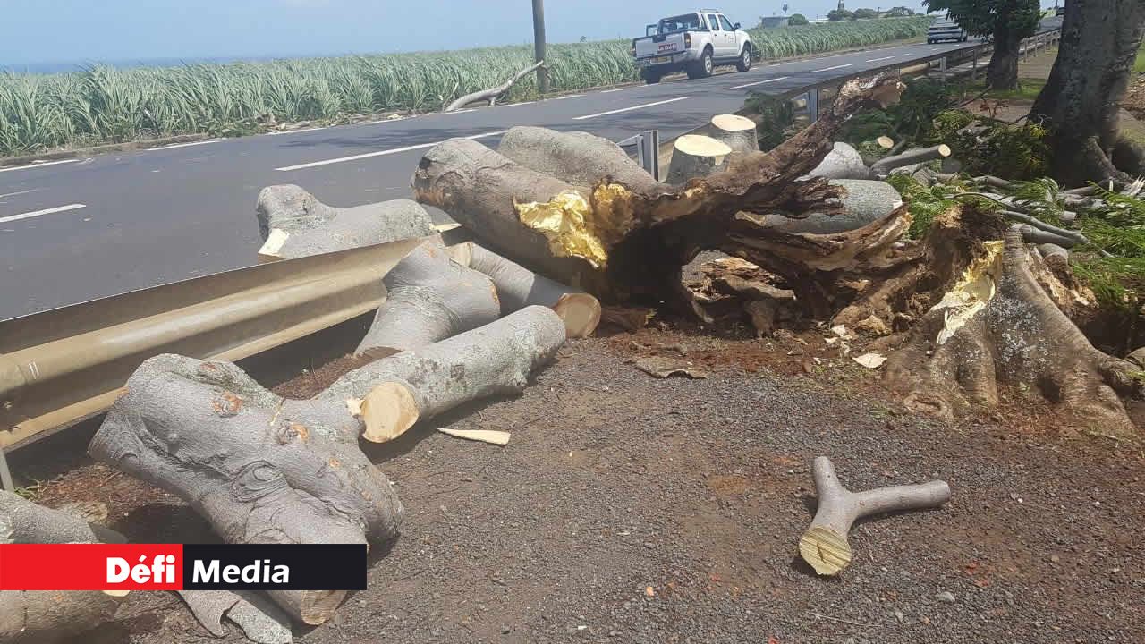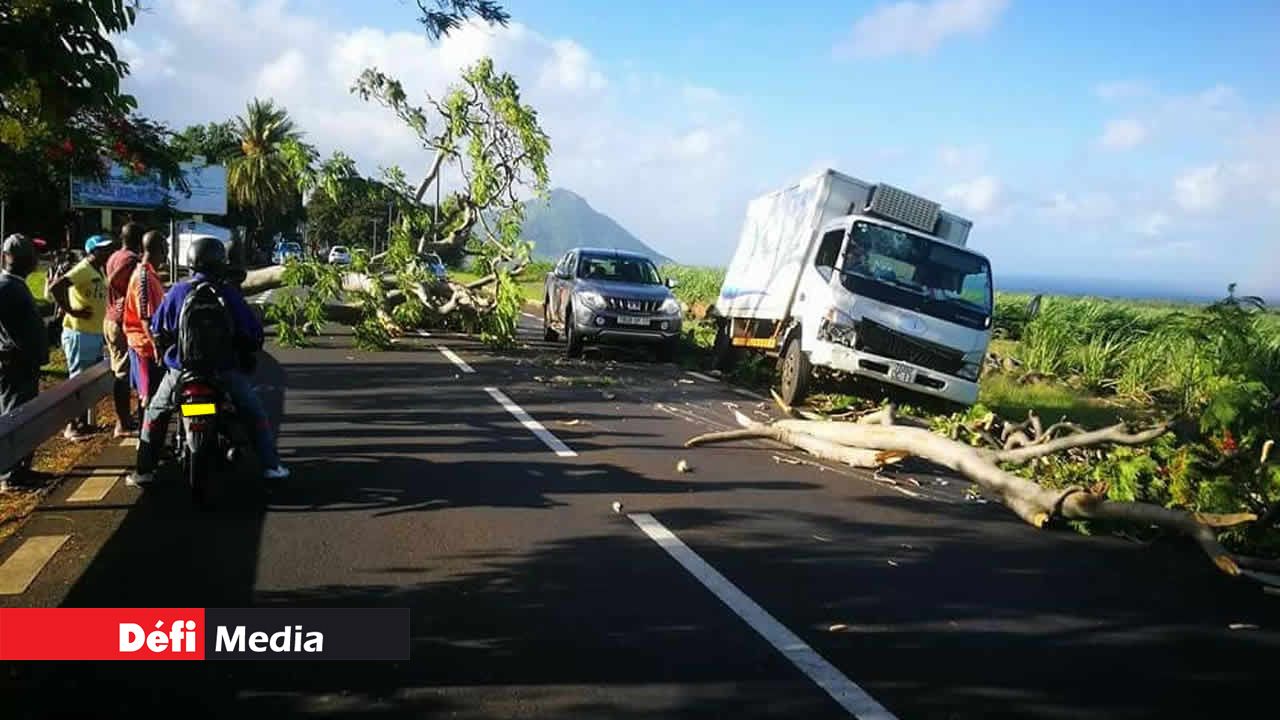 L'arbre est tombé en raison des rafales qui soufflent en ce moment sur le pays. L’effet combiné de la tempête tropicale Berguitta et de l’anticyclone au sud des Mascareignes occasionne un temps venteux sur notre région, indique la station météo de Vacoas.