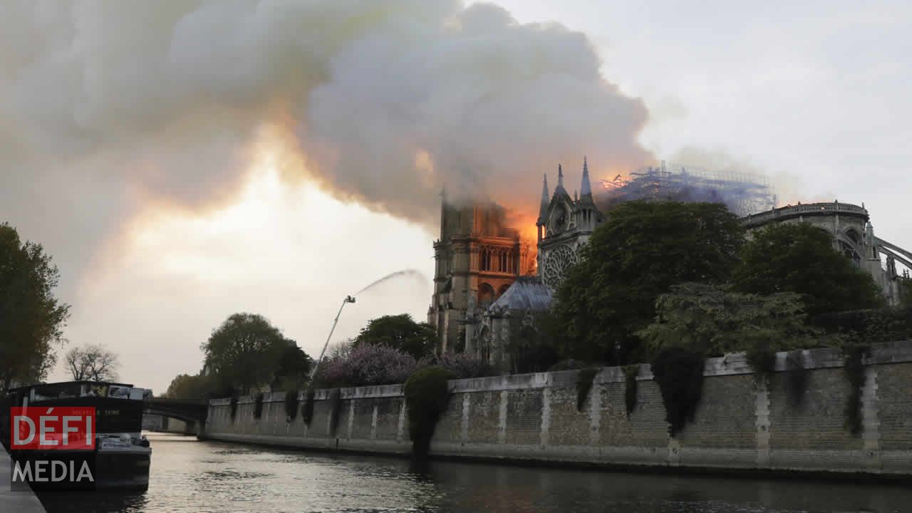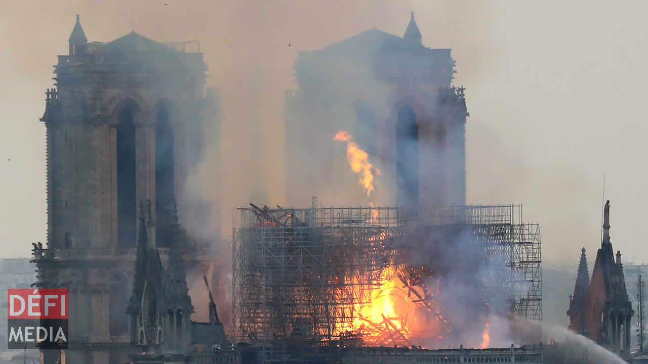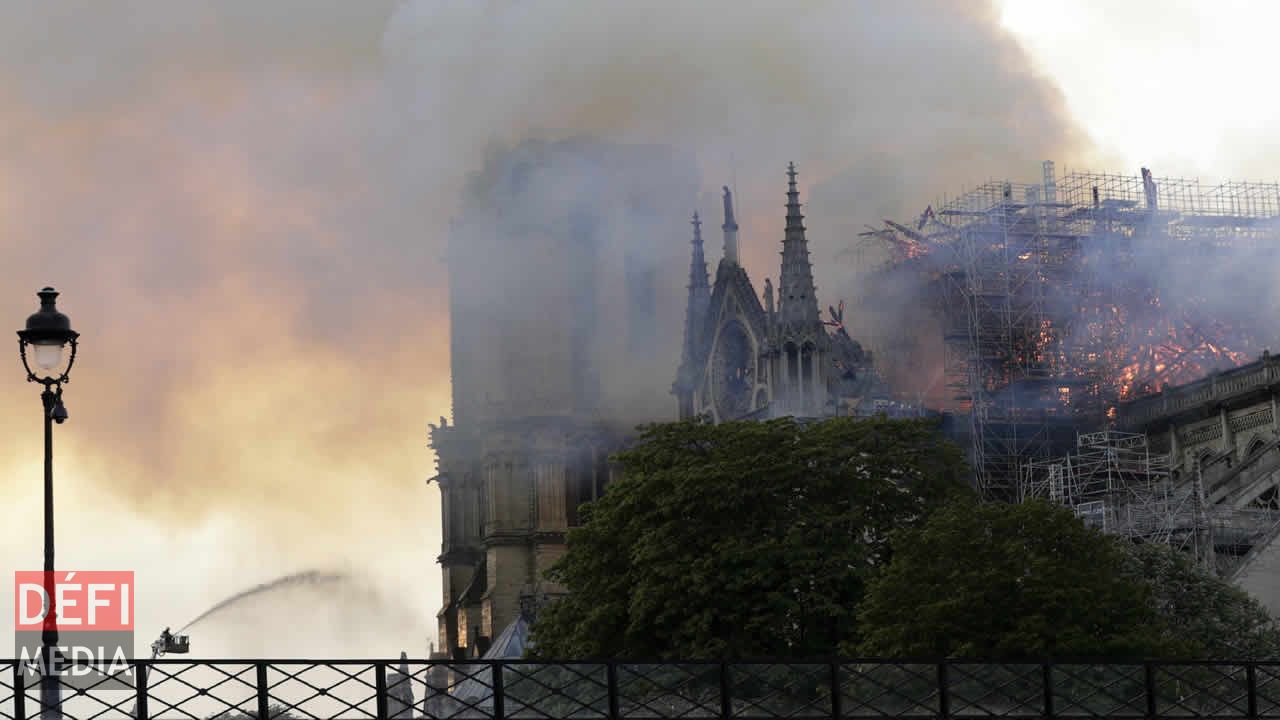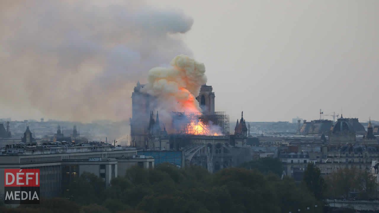 Une épaisse fumée aux teintes jaunâtres se dégageait de l'édifice, dévoré par les flammes, des images impressionnantes que diffusaient en direct télévisions et réseaux sociaux en France.