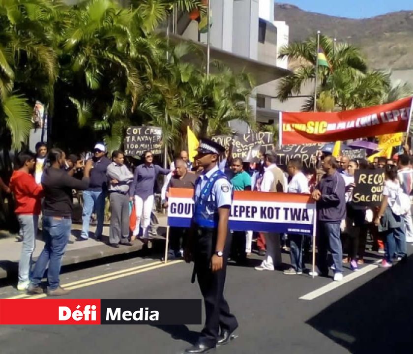 Manifestation des employés des Casinos de Maurice à la mi-journée lundi 4 juillet devant les locaux de la State Investment Corporation (SIC) à Port-Louis.