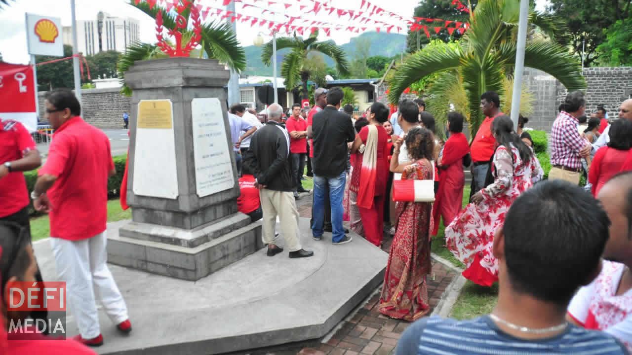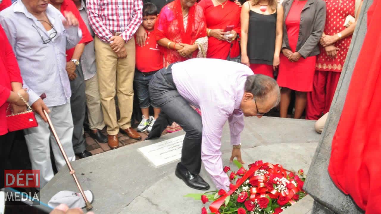 Après le dépôt de gerbes, Navin Ramgoolam a dévoilé une plaque commémorative portant les noms des « soldats disparus » du PTr.