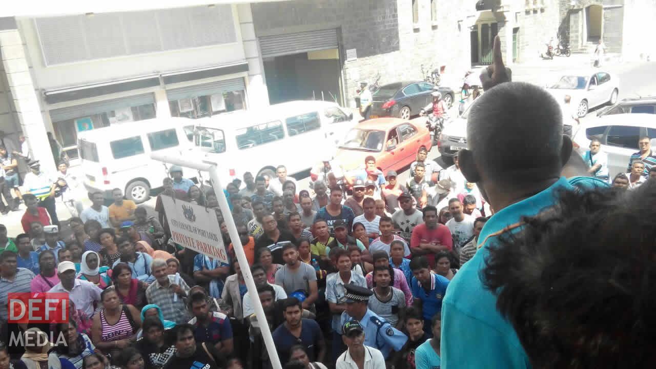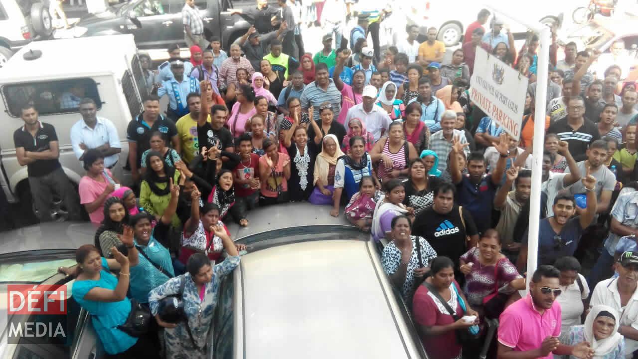 Défilée des députés de l’Opposition mardi 19 avril à la mairie de Port-Louis, où des marchands ambulants se sont rassemblés pour protester contre leur relogement.