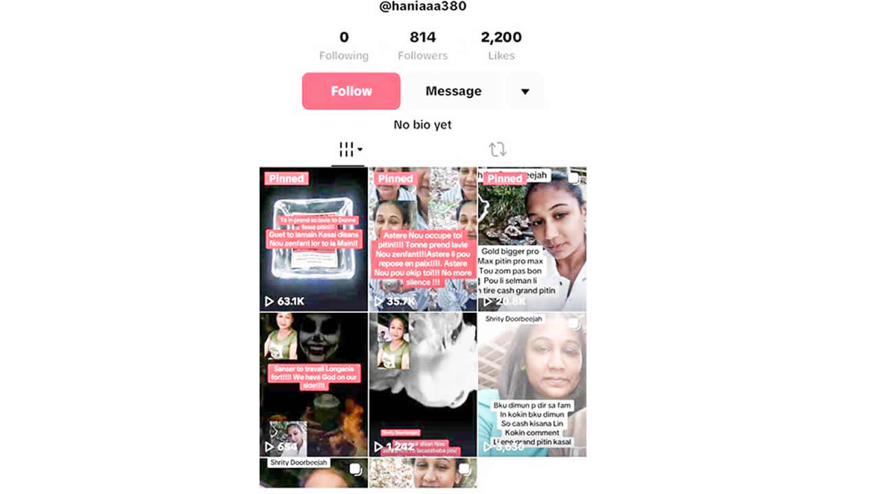 Mahimah, une jeune habitante de La Flora, ne sait plus vers qui se tourner. Depuis plusieurs semaines, elle est la cible de vidéos anonymes et diffamatoires publiées sur TikTok. Ces montages, qui utilisent ses photos ainsi que celles de certains membres de sa famille, sont accompagnés de propos insultants, de musiques vulgaires et de titres malveillants, laissant entendre des accusations graves, dont des liens avec la drogue. Elle déplore l’absence de réaction des autorités malgré ses nombreuses démarches.
