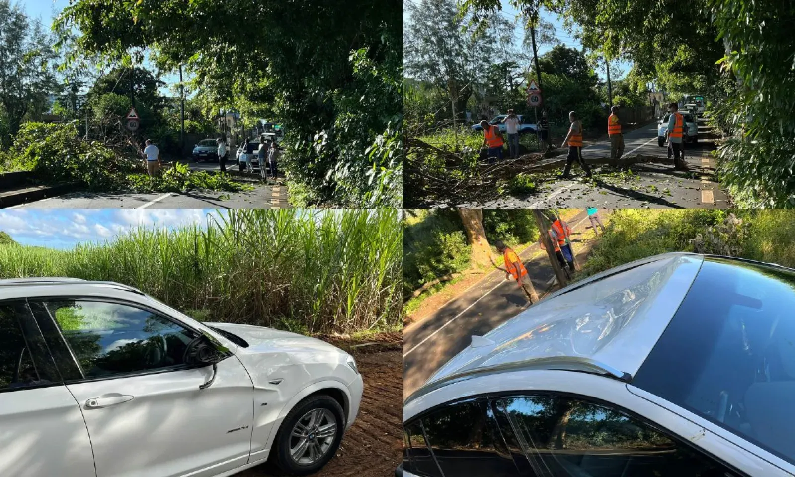 Le conducteur d'une BMW X4 a eu une désagréable surprise lorsqu'une branche est tombée sur sa voiture mercredi matin à Villebague, dans le district de Pamplemousses.