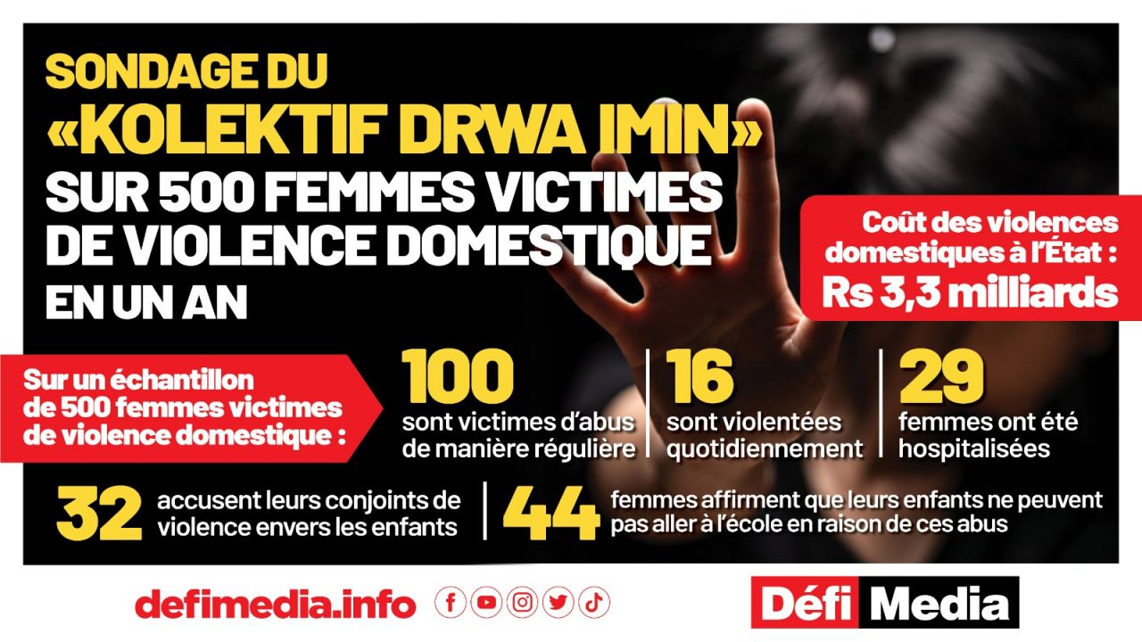 Cependant, les projections du Kolektif Drwa Imin, organisation militant pour le respect des droits humains à Maurice, sont encore plus alarmantes : selon cette organisation, les coûts de la violence domestique pourraient atteindre Rs 3,3 milliards.