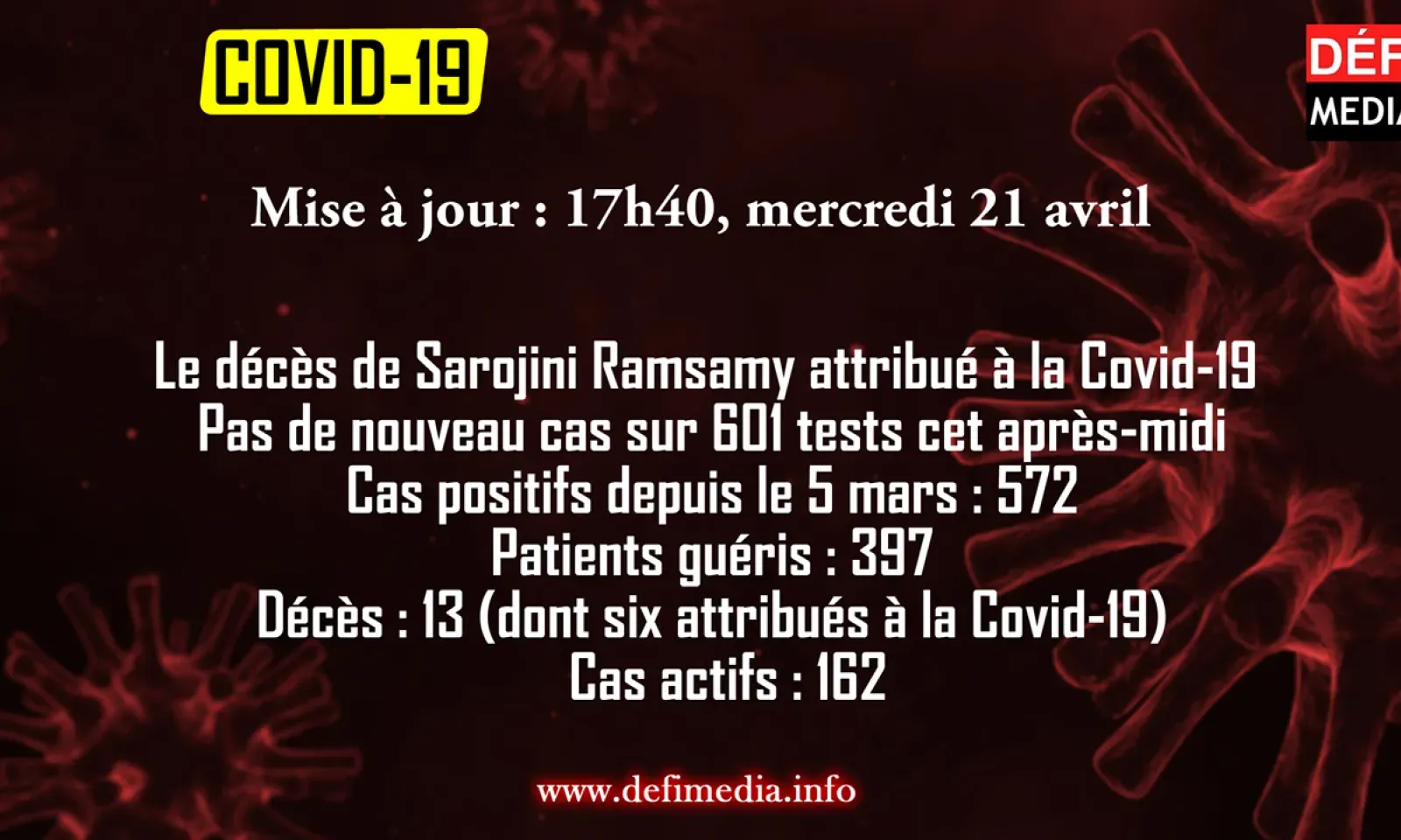 Autre info : aucun nouveau cas de contamination locale n’a été enregistré jusqu’à 17 h 00 ce mercredi 21 avril sur les 601 tests PCR analysés.