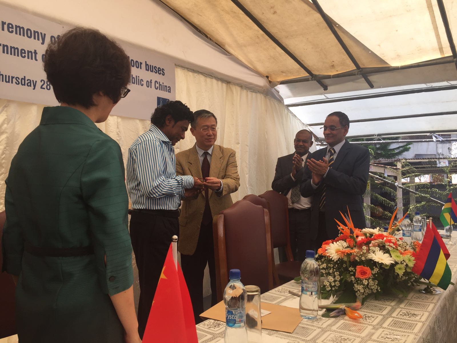 Le Grand argentier participait à une cérémonie à Bonne-Terre où 20 « semi-low floor buses » ont été remis à la Compagnie nationale de transport (CNT) par le gouvernement chinois.