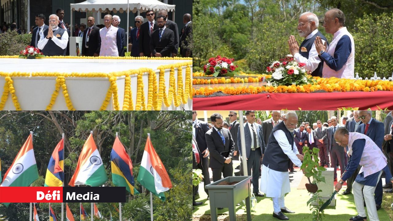 Le Premier ministre indien, Narendra Modi, a participé ce mardi 11 mars à une cérémonie de dépôt de gerbes sur les Samadhis de Sir Seewoosagur Ramgoolam et de Sir Anerood Jugnauth au jardin botanique de Pamplemousses.