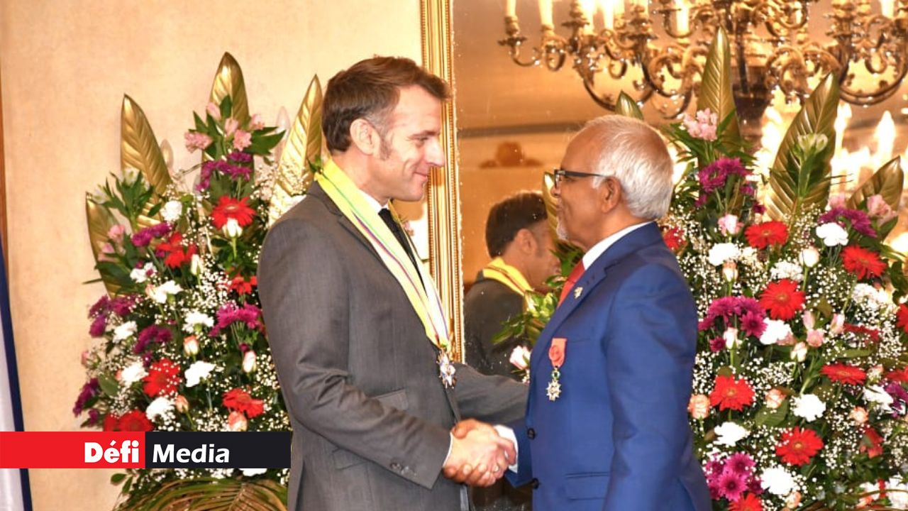 Le président français Emmanuel Macron a été élevé au rang de Grand Commander of the Order of the Star and Key of the Indian Ocean (GCSK) par le président de la République de Maurice, Dharam Gokhool, lors de sa visite de courtoisie au chef de l’État mauricien, ce jeudi 20 novembre.