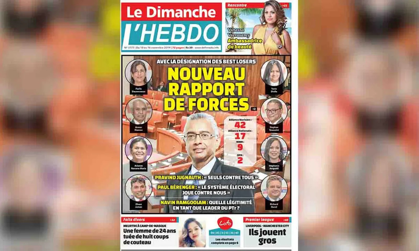 42 - 17 - 9 - 2. Non, il ne s’agit pas des chiffres gagnants du loto. Ils correspondent à la nouvelle configuration de l’Assemblée nationale avec l’allocation des huit sièges additionnels aux Best Losers. Les députés correctifs ont en effet été désignés le samedi 9 novembre 2019. L’annonce a été faite par le commissaire électoral Irfan Rahman. Le nombre de sièges qu’obtient finalement l’Alliance Morisien passe de 38 à 42 ; celui de l’Alliance Nationale passe de 14 à 17 ; et celui du MMM passe de 8 à 9. Le nombre de sièges pour l’Organisation du Peuple de Rodrigues reste inchangé, soit deux. Parmi les candidats repêchés : Stephan Toussaint, Fazila Daureeawoo, Tania Diolle et Anwar Husnoo, qui rejoignent les rangs du gouvernement. Il y a aussi Richard Duval, Ehsan Juman, Stéphanie Anquetil et Arianne Navarre-Marie, qui rejoignent l’opposition.