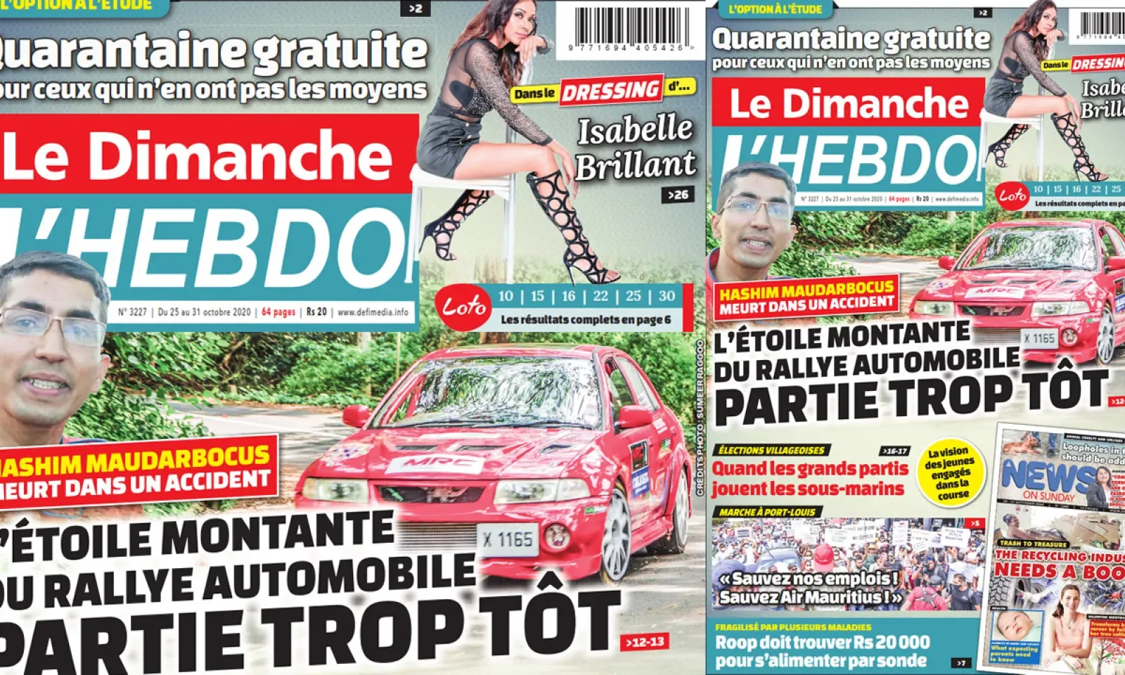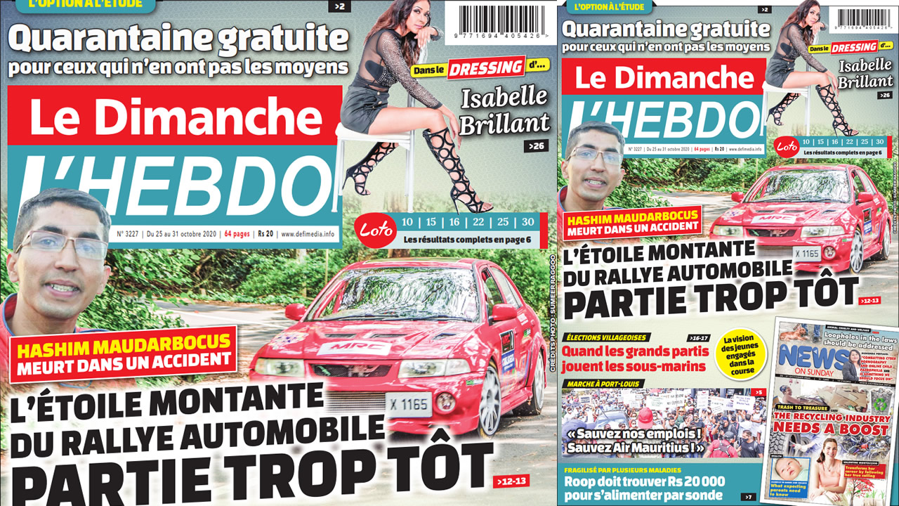 ? Voici la Une de Le Dimanche-L'Hebdo. Le journal est en vente à Rs 20 l'exemplaire aux endroits habituels (supermarchés, boutiques, tabagies, superettes). Bonne lecture !