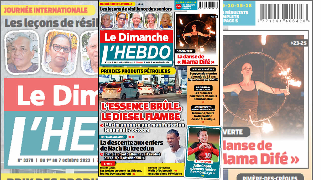 ? Voici la Une de Le Dimanche/L'Hebdo. Le journal est en vente à Rs 20 l'exemplaire aux endroits habituels (supermarchés, boutiques, tabagies, superettes). Bonne lecture !