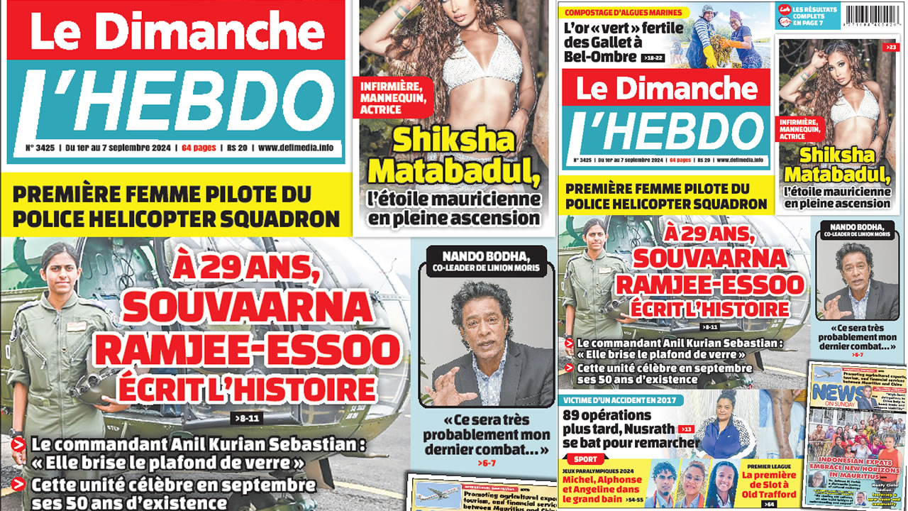 ? Voici la Une de Le Dimanche/L'Hebdo. Le journal est en vente à Rs 20 l'exemplaire aux endroits habituels (supermarchés, boutiques, tabagies, superettes). Bonne lecture !