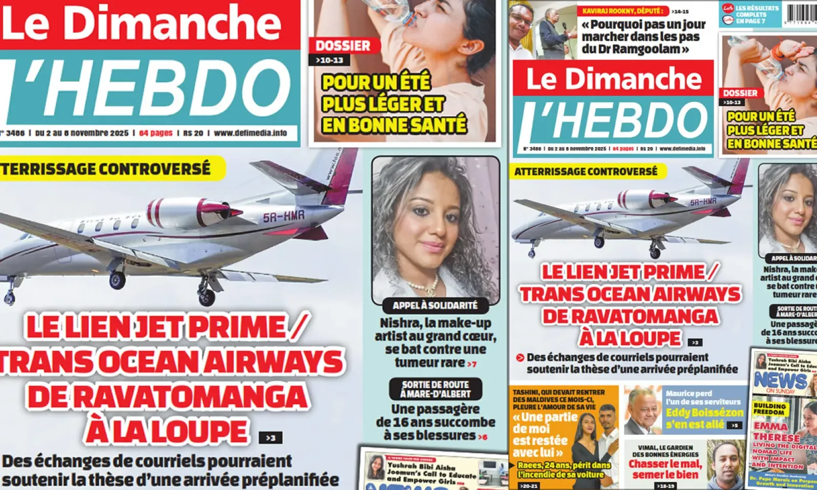 Image ? Voici la Une de Le Dimanche/L'Hebdo. Le journal est en vente à Rs 20 l'exemplaire aux endroits habituels (supermarchés, boutiques, tabagies, superettes). Bonne lecture ! Publicité View the discussion thread.
