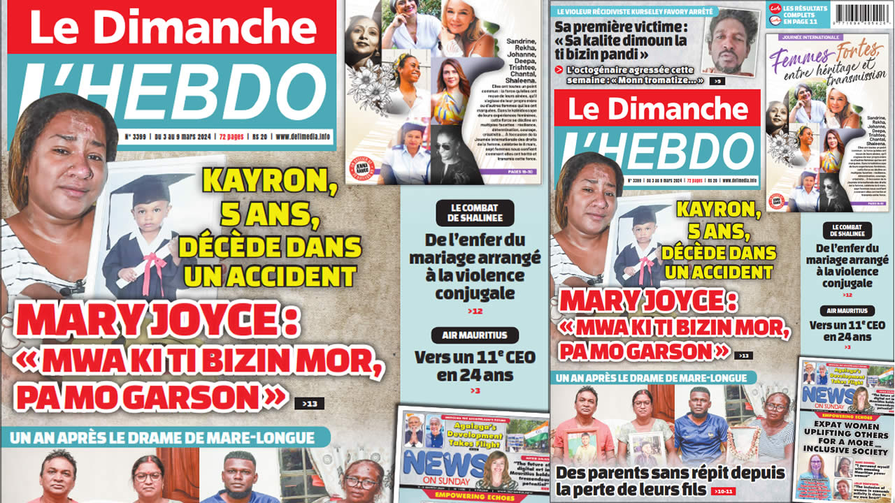 ? Voici la Une de Le Dimanche/L'Hebdo. Le journal est en vente à Rs 20 l'exemplaire aux endroits habituels (supermarchés, boutiques, tabagies, superettes). Bonne lecture !