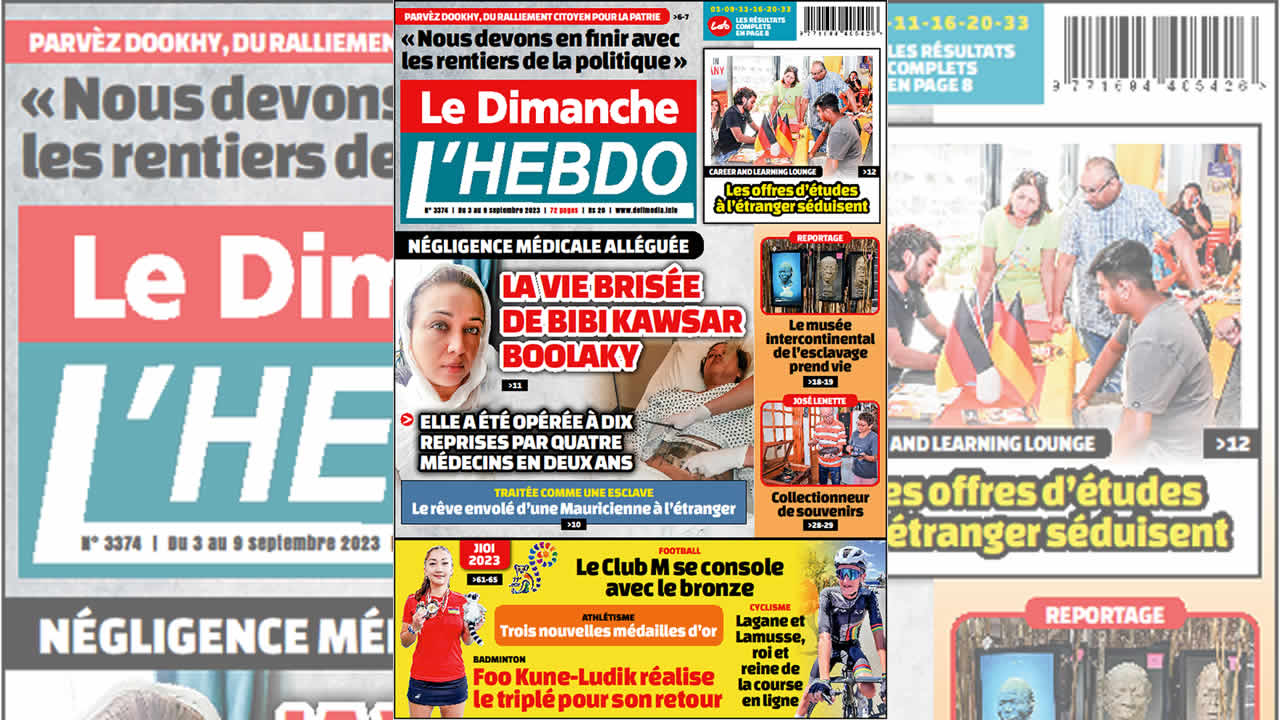 ? Voici la Une de Le Dimanche/L'Hebdo. Le journal est en vente à Rs 20 l'exemplaire aux endroits habituels (supermarchés, boutiques, tabagies, superettes). Bonne lecture !