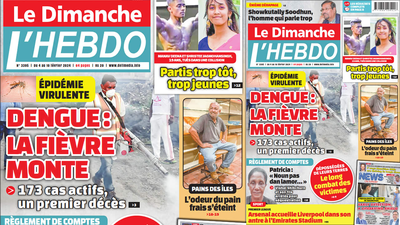 ? Voici la Une de Le Dimanche/L'Hebdo. Le journal est en vente à Rs 20 l'exemplaire aux endroits habituels (supermarchés, boutiques, tabagies, superettes). Bonne lecture !