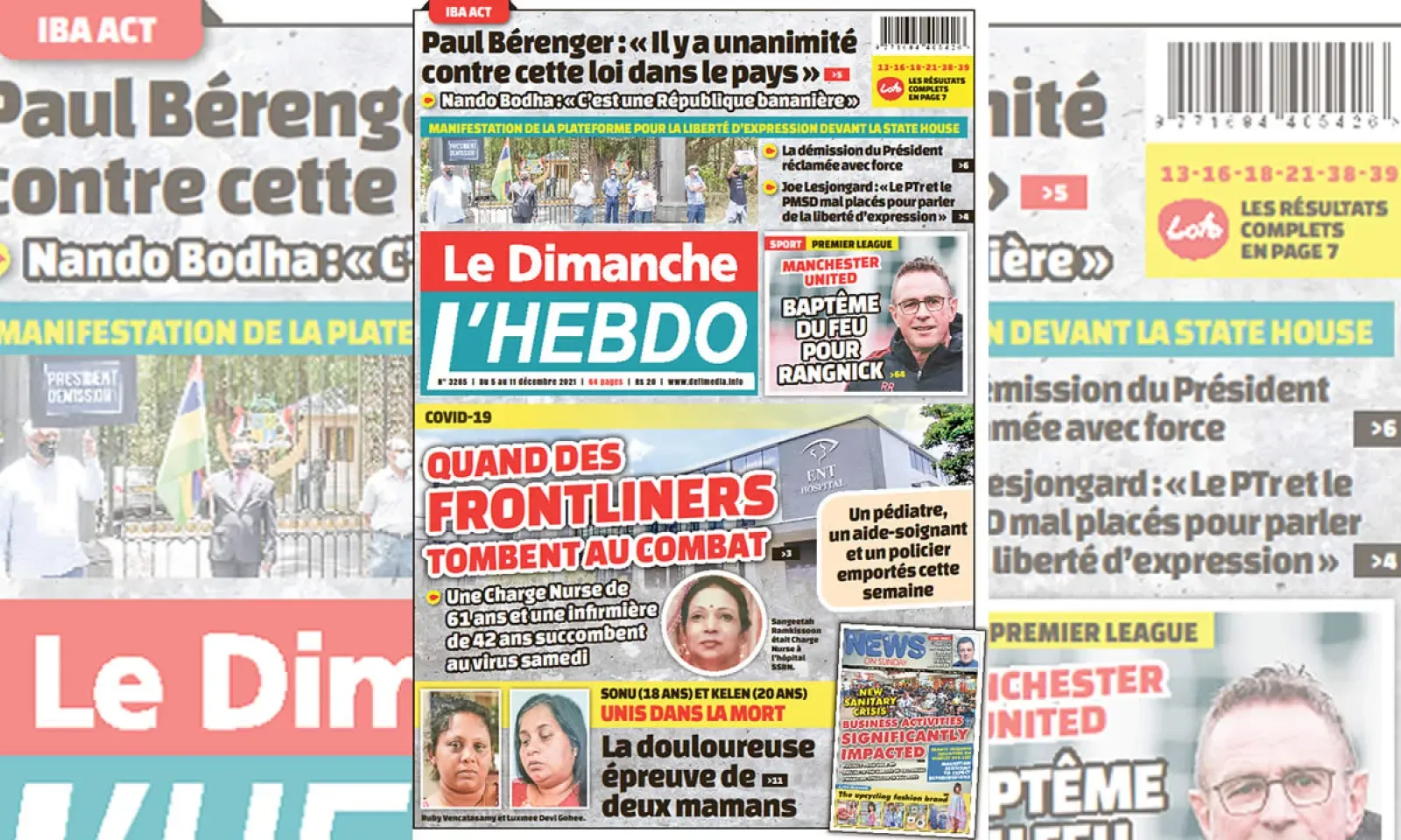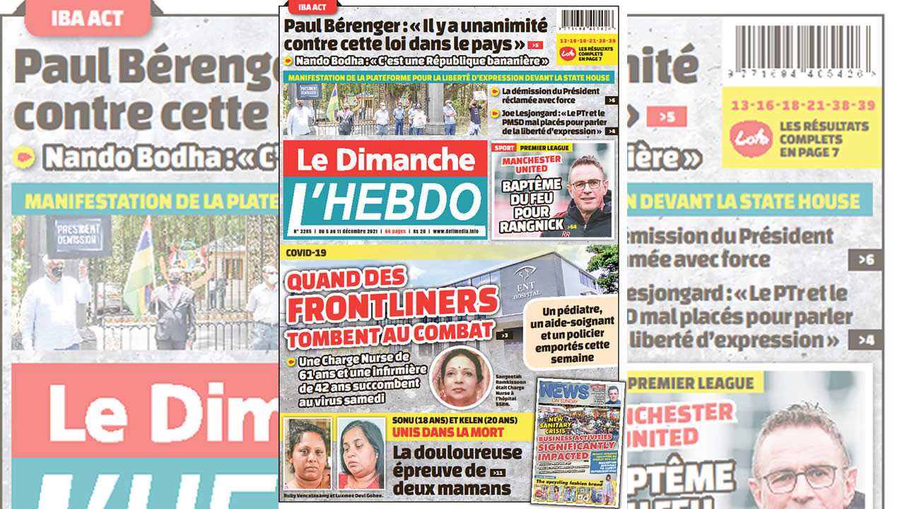 ? Voici la Une de Le Dimanche/L'Hebdo. Le journal est en vente à Rs 20 l'exemplaire aux endroits habituels (supermarchés, boutiques, tabagies, superettes). Bonne lecture !