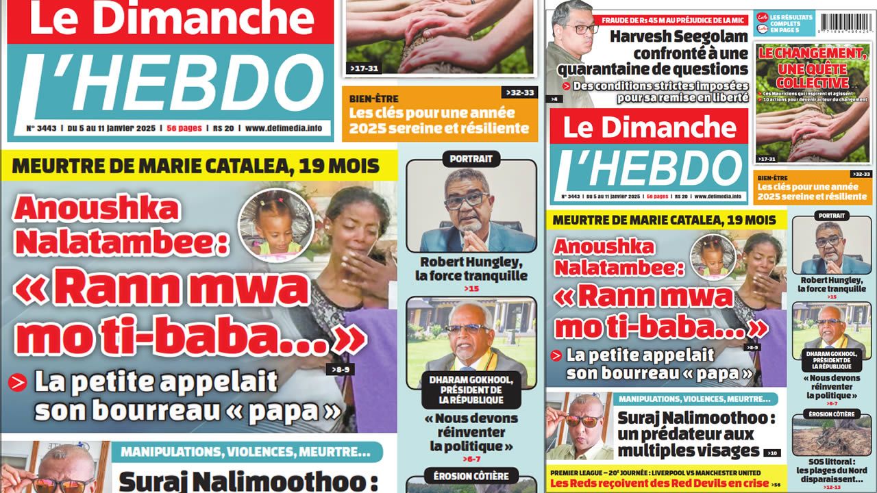 ? Voici la Une de Le Dimanche/L'Hebdo. Le journal est en vente à Rs 20 l'exemplaire aux endroits habituels (supermarchés, boutiques, tabagies, superettes). Bonne lecture !