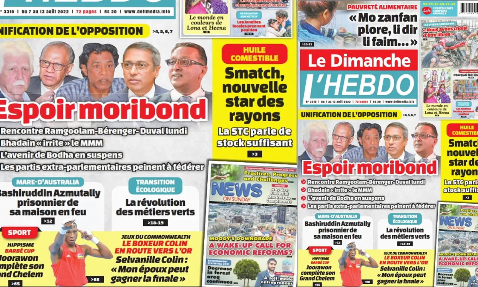 ? Voici la Une de Le Dimanche/L'Hebdo. Le journal est en vente à Rs 20 l'exemplaire aux endroits habituels (supermarchés, boutiques, tabagies, superettes). Bonne lecture !