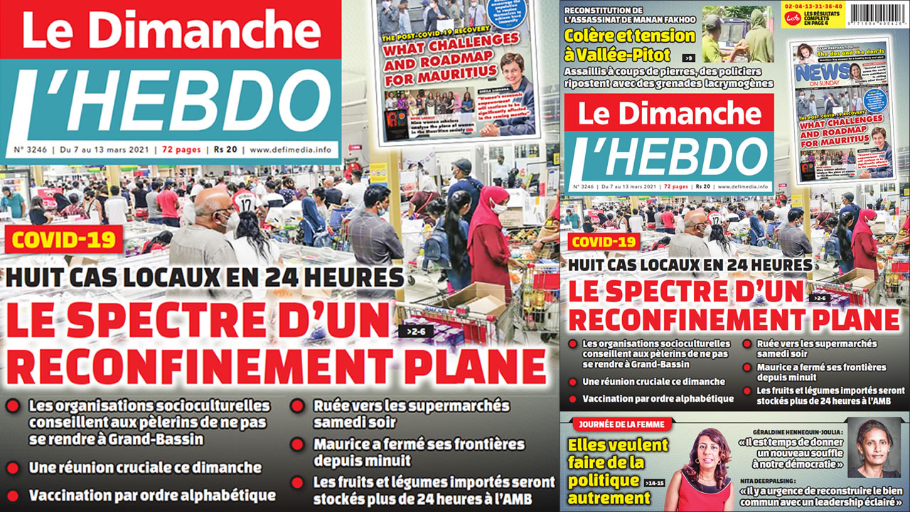 ? Voici la Une de Le Dimanche/L'Hebdo. Le journal est en vente à Rs 20 l'exemplaire aux endroits habituels (supermarchés, boutiques, tabagies, superettes). Bonne lecture !