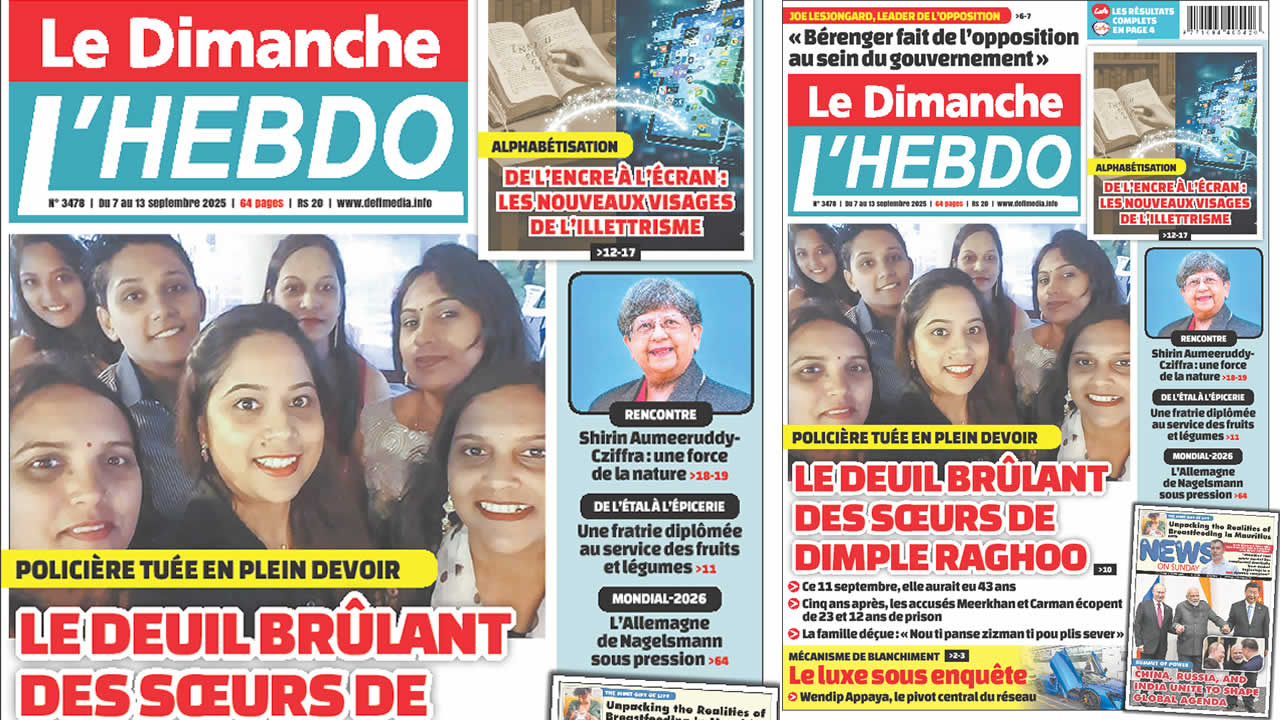 ? Voici la Une de Le Dimanche/L'Hebdo. Le journal est en vente à Rs 20 l'exemplaire aux endroits habituels (supermarchés, boutiques, tabagies, superettes). Bonne lecture !