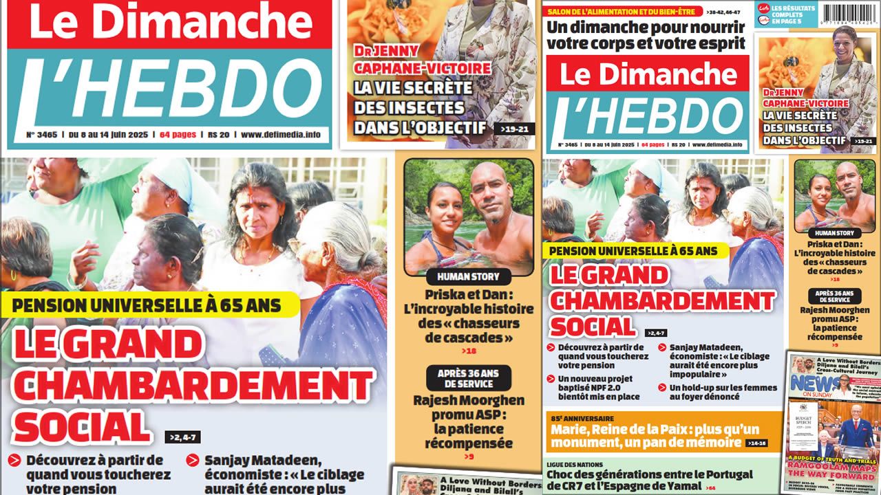 ? Voici la Une de Le Dimanche/L'Hebdo. Le journal est en vente à Rs 20 l'exemplaire aux endroits habituels (supermarchés, boutiques, tabagies, superettes). Bonne lecture !
