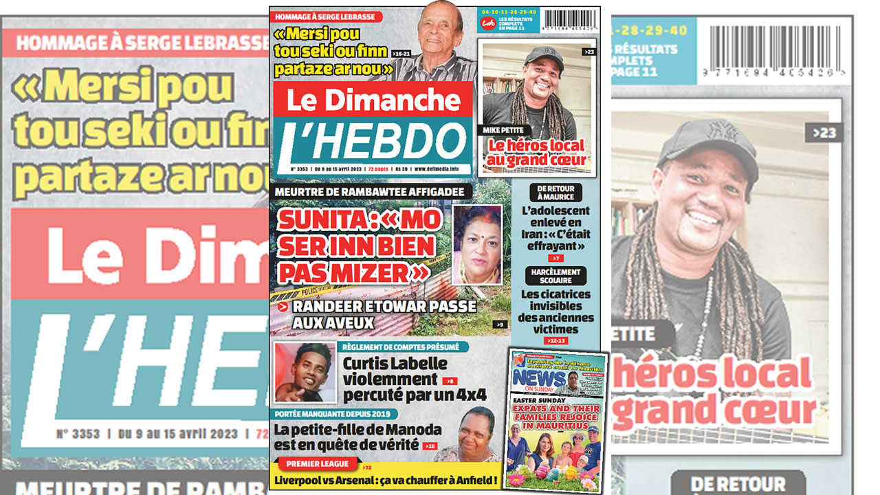 ? Voici la Une de Le Dimanche/L'Hebdo. Le journal est en vente à Rs 20 l'exemplaire aux endroits habituels (supermarchés, boutiques, tabagies, superettes). Bonne lecture !