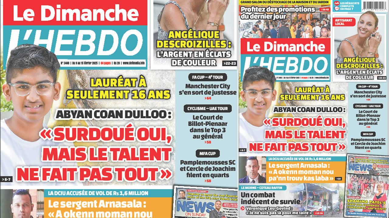 Image ? Voici la Une de Le Dimanche/L'Hebdo. Le journal est en vente à Rs 20 l'exemplaire aux endroits habituels (supermarchés, boutiques, tabagies, superettes). Bonne lecture ! Publicité View the discussion thread.