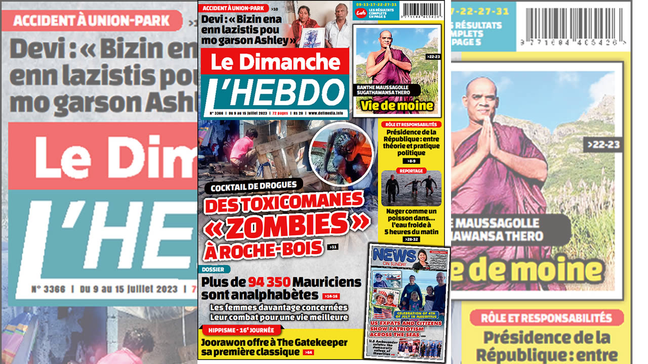 ? Voici la Une de Le Dimanche/L'Hebdo. Le journal est en vente à Rs 20 l'exemplaire aux endroits habituels (supermarchés, boutiques, tabagies, superettes). Bonne lecture !