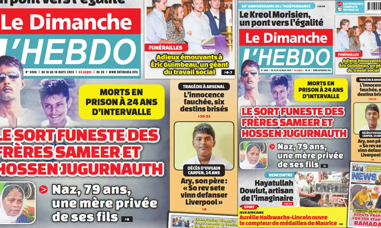 ? Voici la Une de Le Dimanche/L'Hebdo. Le journal est en vente à Rs 20 l'exemplaire aux endroits habituels (supermarchés, boutiques, tabagies, superettes). Bonne lecture !