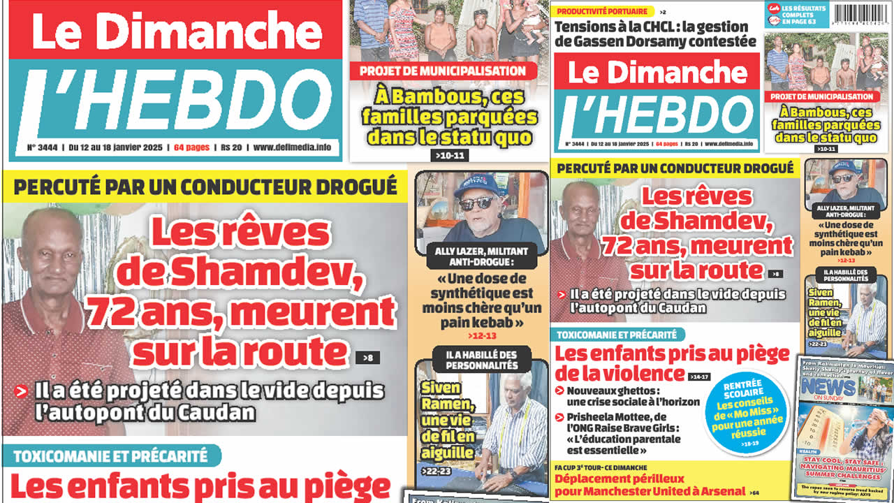 Image ? Voici la Une de Le Dimanche/L'Hebdo. Le journal est en vente à Rs 20 l'exemplaire aux endroits habituels (supermarchés, boutiques, tabagies, superettes). Bonne lecture ! Publicité View the discussion thread.