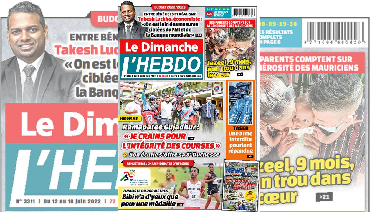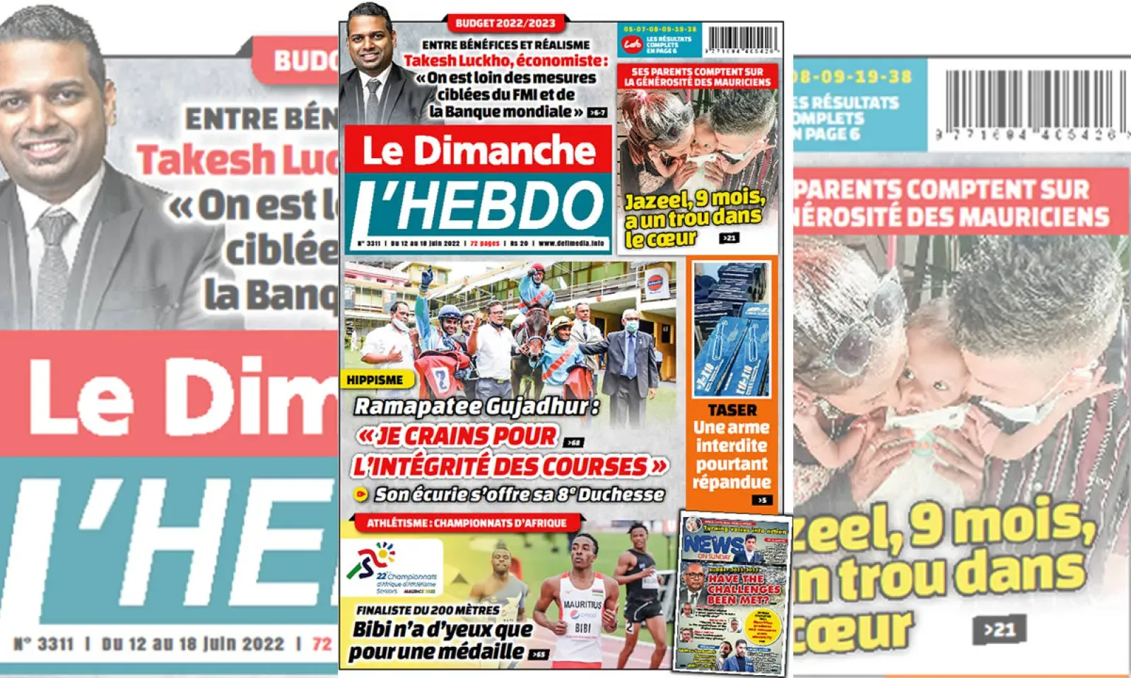 ? Voici la Une de Le Dimanche/L'Hebdo. Le journal est en vente à Rs 20 l'exemplaire aux endroits habituels (supermarchés, boutiques, tabagies, superettes). Bonne lecture !
