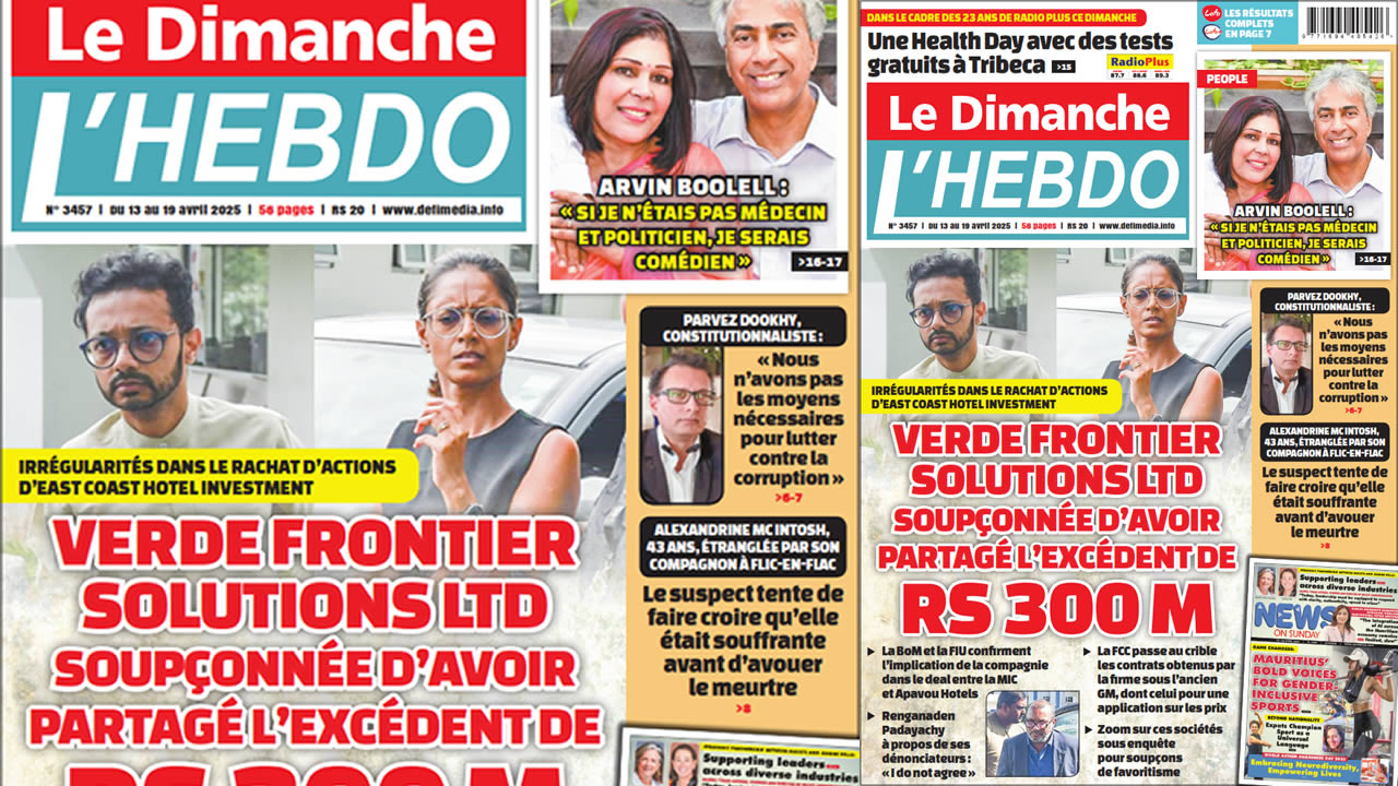 ? Voici la Une de Le Dimanche/L'Hebdo. Le journal est en vente à Rs 20 l'exemplaire aux endroits habituels (supermarchés, boutiques, tabagies, superettes). Bonne lecture !