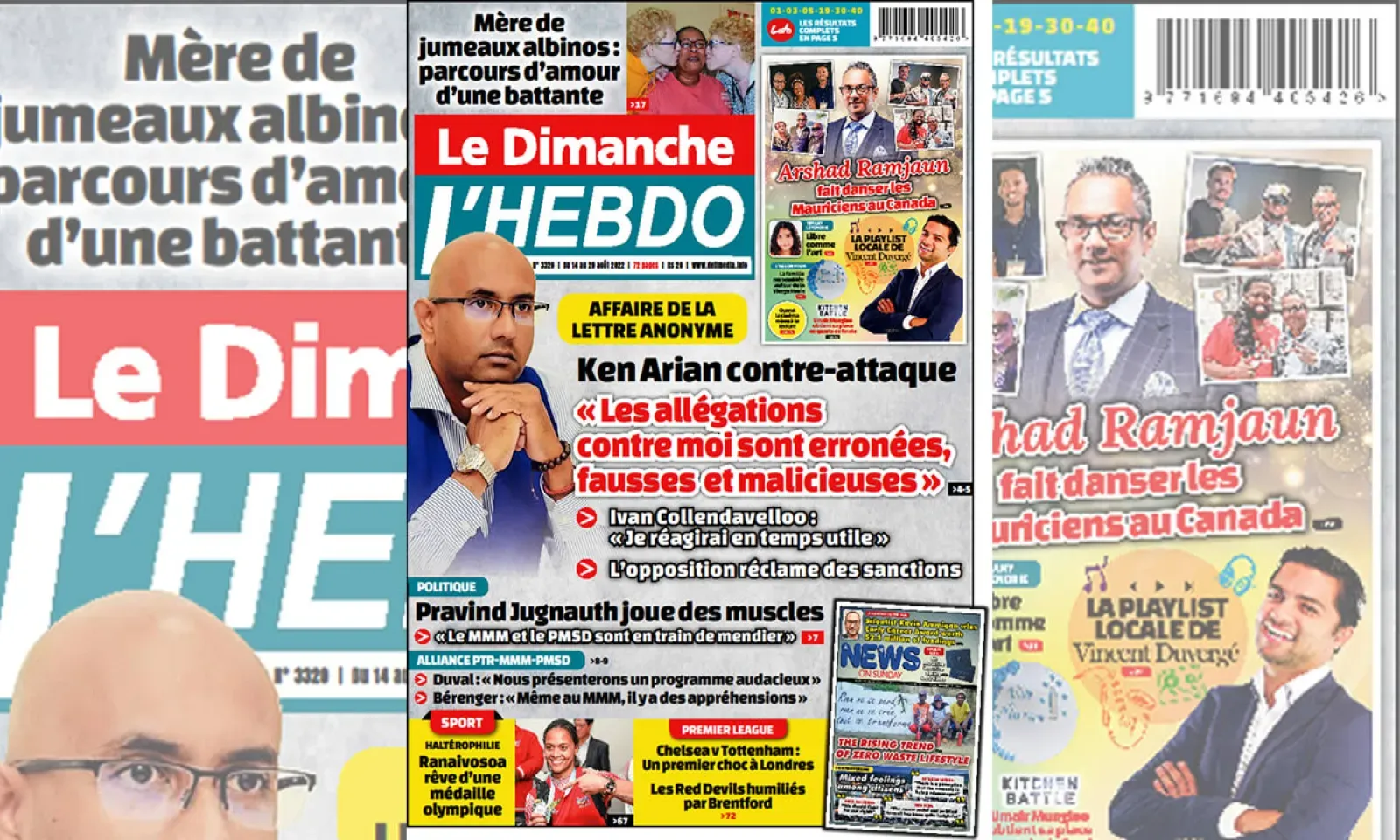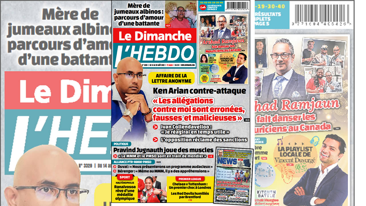 ? Voici la Une de Le Dimanche/L'Hebdo. Le journal est en vente à Rs 20 l'exemplaire aux endroits habituels (supermarchés, boutiques, tabagies, superettes). Bonne lecture !