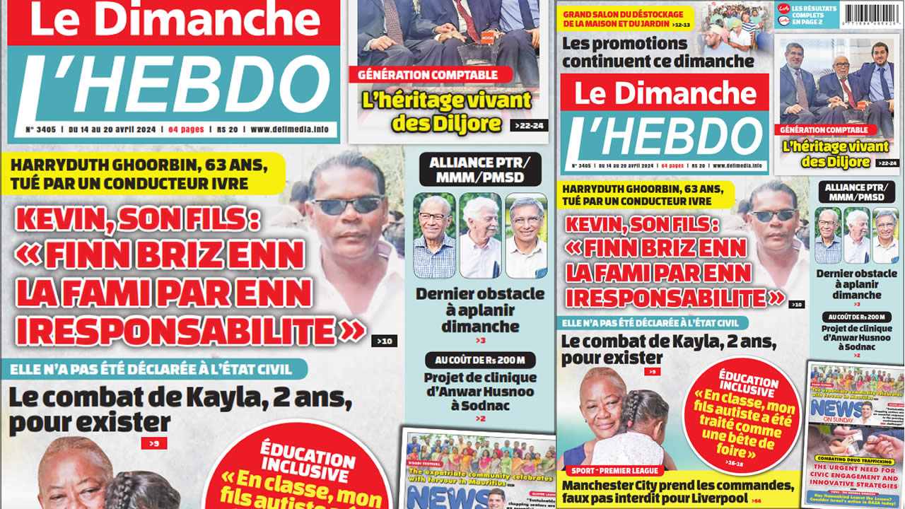 Image ? Voici la Une de Le Dimanche/L'Hebdo. Le journal est en vente à Rs 20 l'exemplaire aux endroits habituels (supermarchés, boutiques, tabagies, superettes). Bonne lecture ! Publicité View the discussion thread.