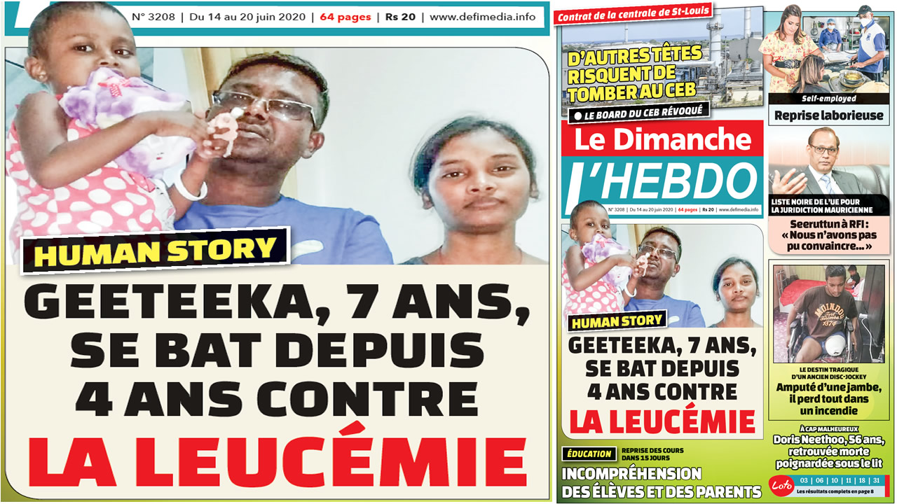 Elle n’a que 7 ans et pourtant, la petite Geeteeka Bundhooa a plus de souvenirs entre les quatre murs des hôpitaux qu’à son domicile. Actuellement en Inde, la petite fille passe ses journées enfermées dans une chambre, en attendant d’avoir assez d’argent pour la greffe de moelle osseuse, obligatoire aujourd’hui après plus de quatre ans de lutte. Retour sur ce combat acharné…