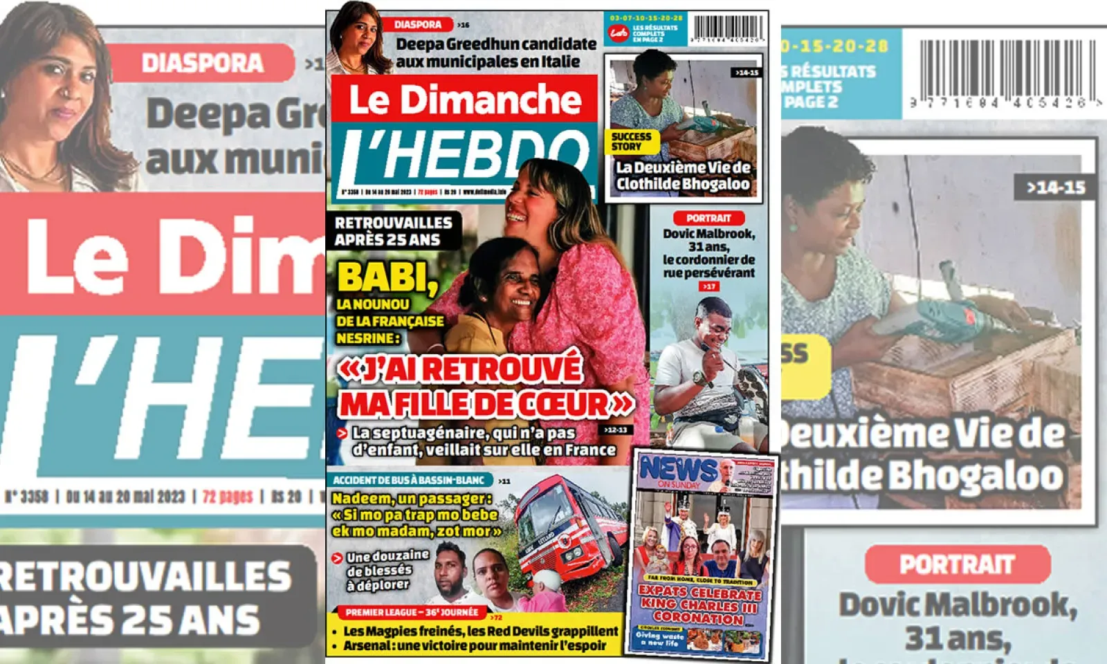 ? Voici la Une de Le Dimanche/L'Hebdo. Le journal est en vente à Rs 20 l'exemplaire aux endroits habituels (supermarchés, boutiques, tabagies, superettes). Bonne lecture !