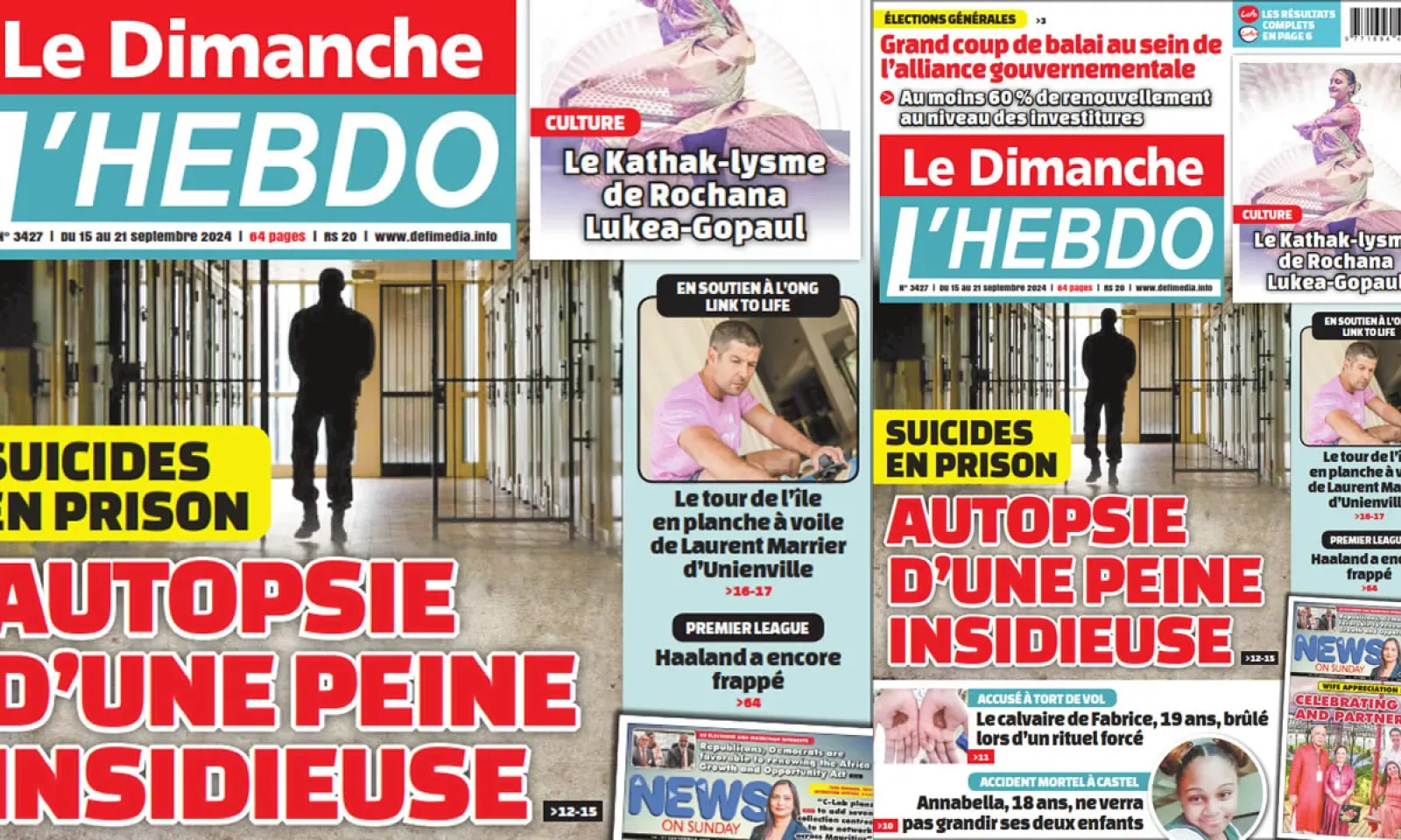 ? Voici la Une de Le Dimanche/L'Hebdo. Le journal est en vente à Rs 20 l'exemplaire aux endroits habituels (supermarchés, boutiques, tabagies, superettes). Bonne lecture !