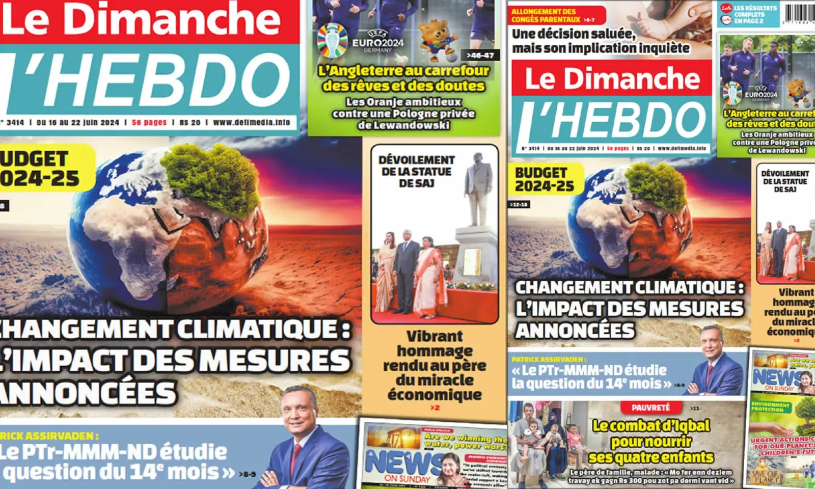 ? Voici la Une de Le Dimanche/L'Hebdo. Le journal est en vente à Rs 20 l'exemplaire aux endroits habituels (supermarchés, boutiques, tabagies, superettes). Bonne lecture !