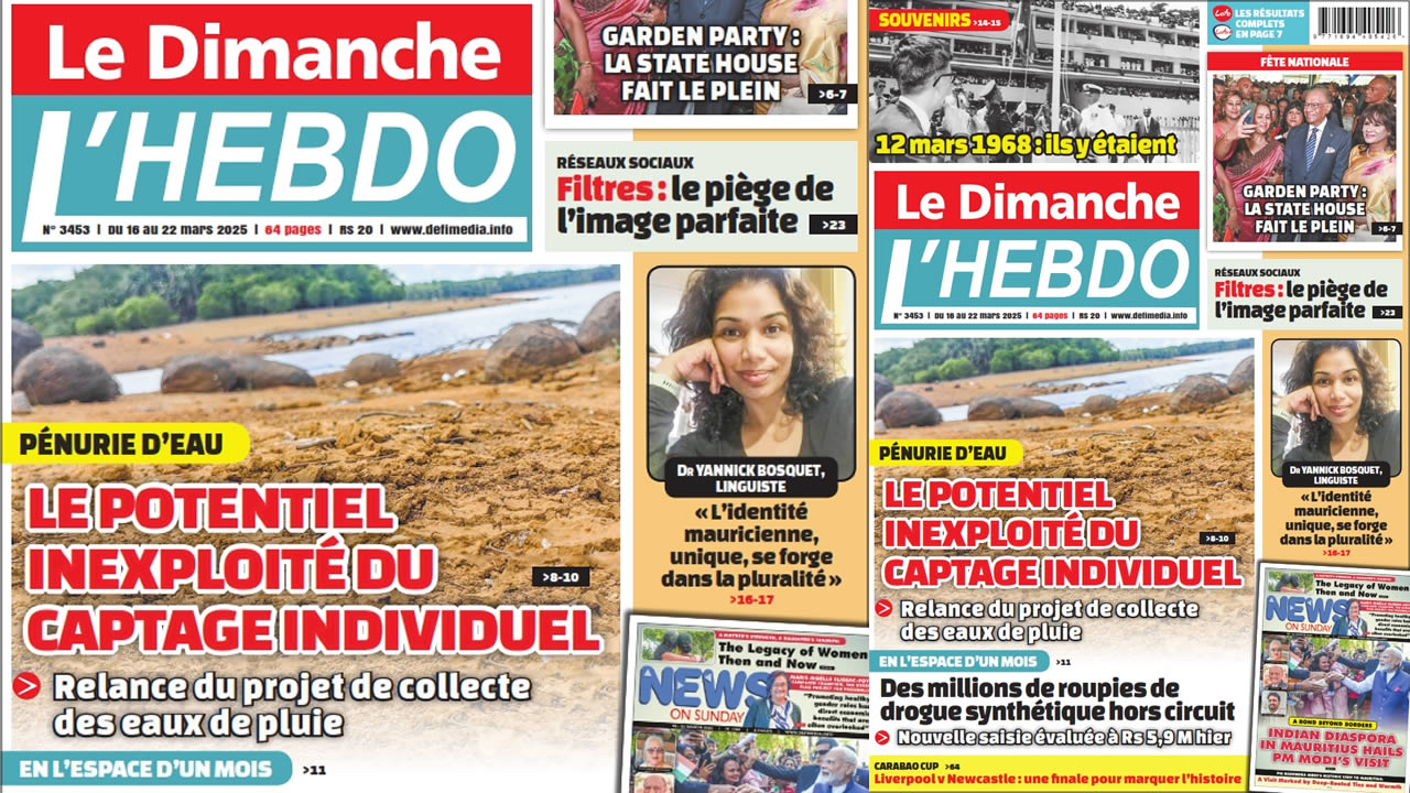 ? Voici la Une de Le Dimanche/L'Hebdo. Le journal est en vente à Rs 20 l'exemplaire aux endroits habituels (supermarchés, boutiques, tabagies, superettes). Bonne lecture !