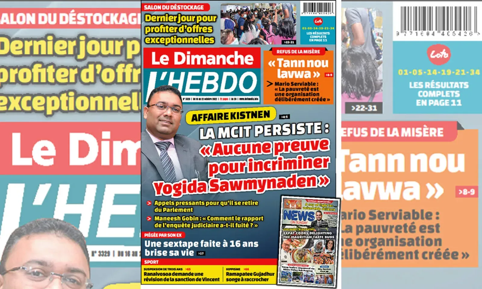 ? Voici la Une de Le Dimanche/L'Hebdo. Le journal est en vente à Rs 20 l'exemplaire aux endroits habituels (supermarchés, boutiques, tabagies, superettes). Bonne lecture !