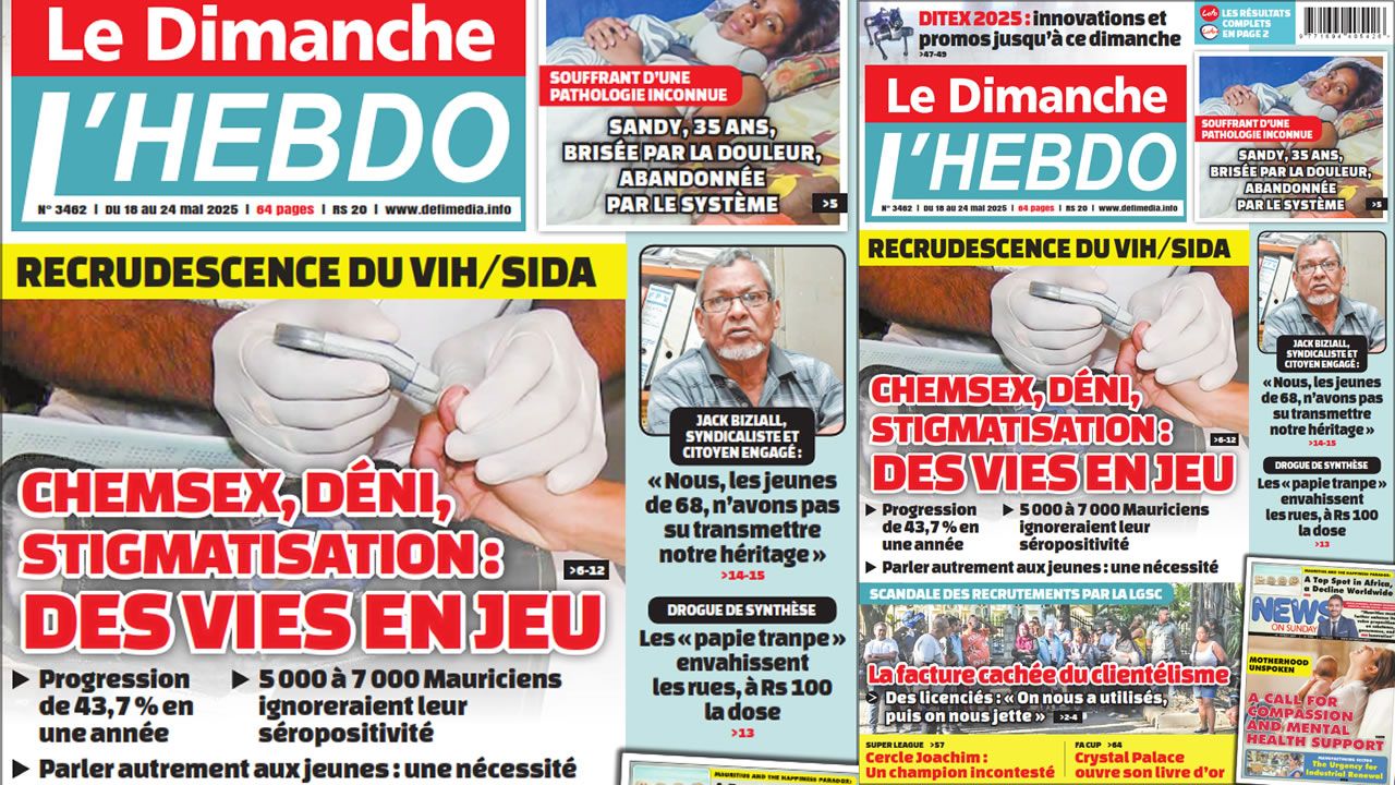 ? Voici la Une de Le Dimanche/L'Hebdo. Le journal est en vente à Rs 20 l'exemplaire aux endroits habituels (supermarchés, boutiques, tabagies, superettes). Bonne lecture !