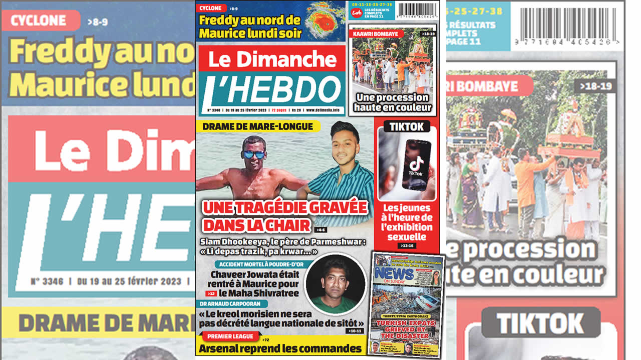 ? Voici la Une de Le Dimanche/L'Hebdo. Le journal est en vente à Rs 20 l'exemplaire aux endroits habituels (supermarchés, boutiques, tabagies, superettes). Bonne lecture !