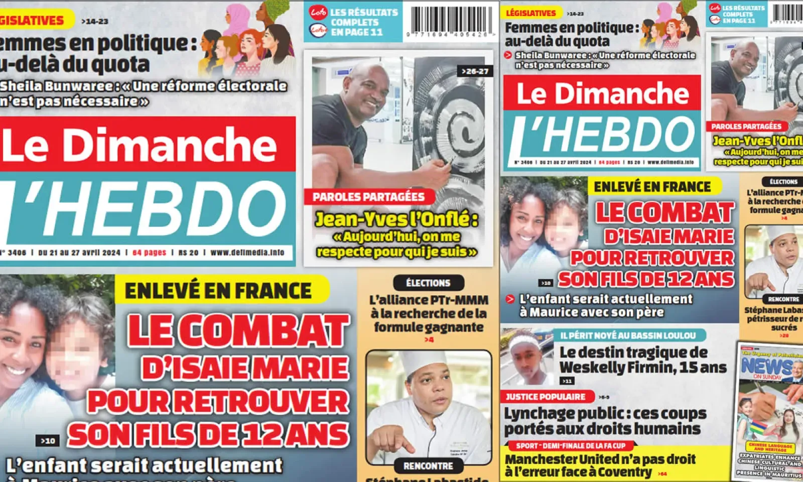 ? Voici la Une de Le Dimanche/L'Hebdo. Le journal est en vente à Rs 20 l'exemplaire aux endroits habituels (supermarchés, boutiques, tabagies, superettes). Bonne lecture !